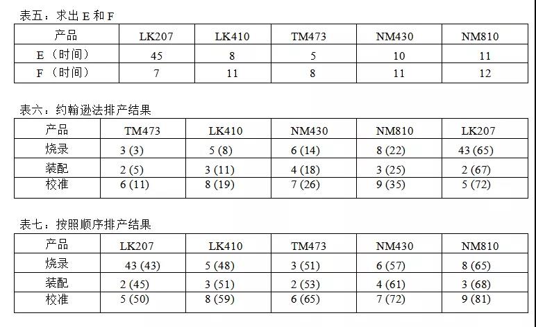 约翰逊法:适用于多项任务在多道工序上进行加工。我公司模块装配车间每天要完成多种产品的烧录、装配、老化、校准及功能测试、入库。