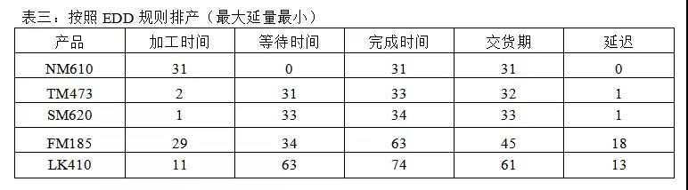 生产排产的最终目的是在满足交期的情况下,对几种产品进行生产排序,以求达到缩短这几种产品的生产周期的目的。根据排序目标的不同,可以选择不同的排序规则,常见的排序规则有: