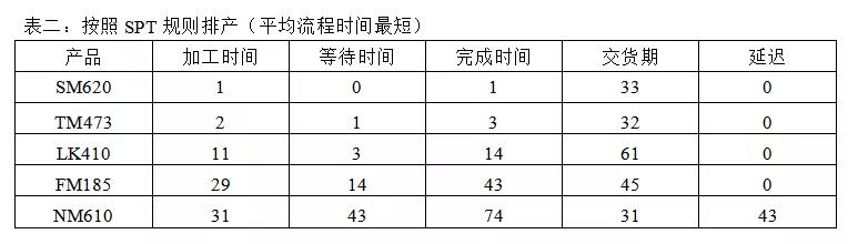 ●SPT shortest process time,优先选择加工时间最短的产品;
