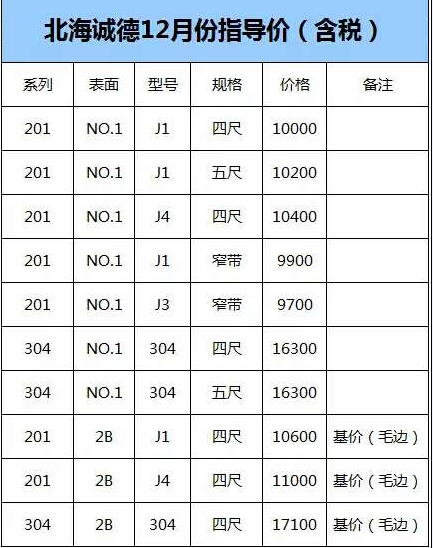 钢厂涨价进行时!据北海诚德消息,今日其指导价大涨,201上调500元/吨,304上调300元/吨,具体如下: