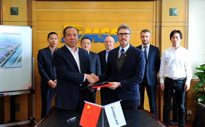 为进一步提高大明各加工中心裁剪加工能力,大明国际与意大利知名设备商VIGANO再度合作,签订了6条裁剪加工线。大明生产技术总监唐中海与VIGANO CEO Mr.Galbiati作为双方代表分别签署了合作协议,大明总裁周克明与VIGANO创始人Mr.Vigano及相关人员共同参与签约仪式。