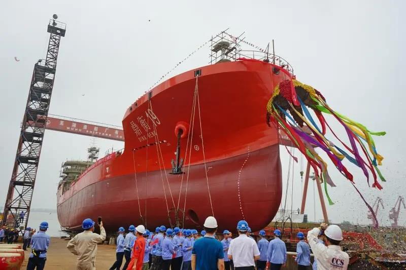 9月6日上午,由芜湖造船厂为上海鼎衡航运科技有限公司建造的6600吨直流电推不锈钢化学品首制船顺利下水。