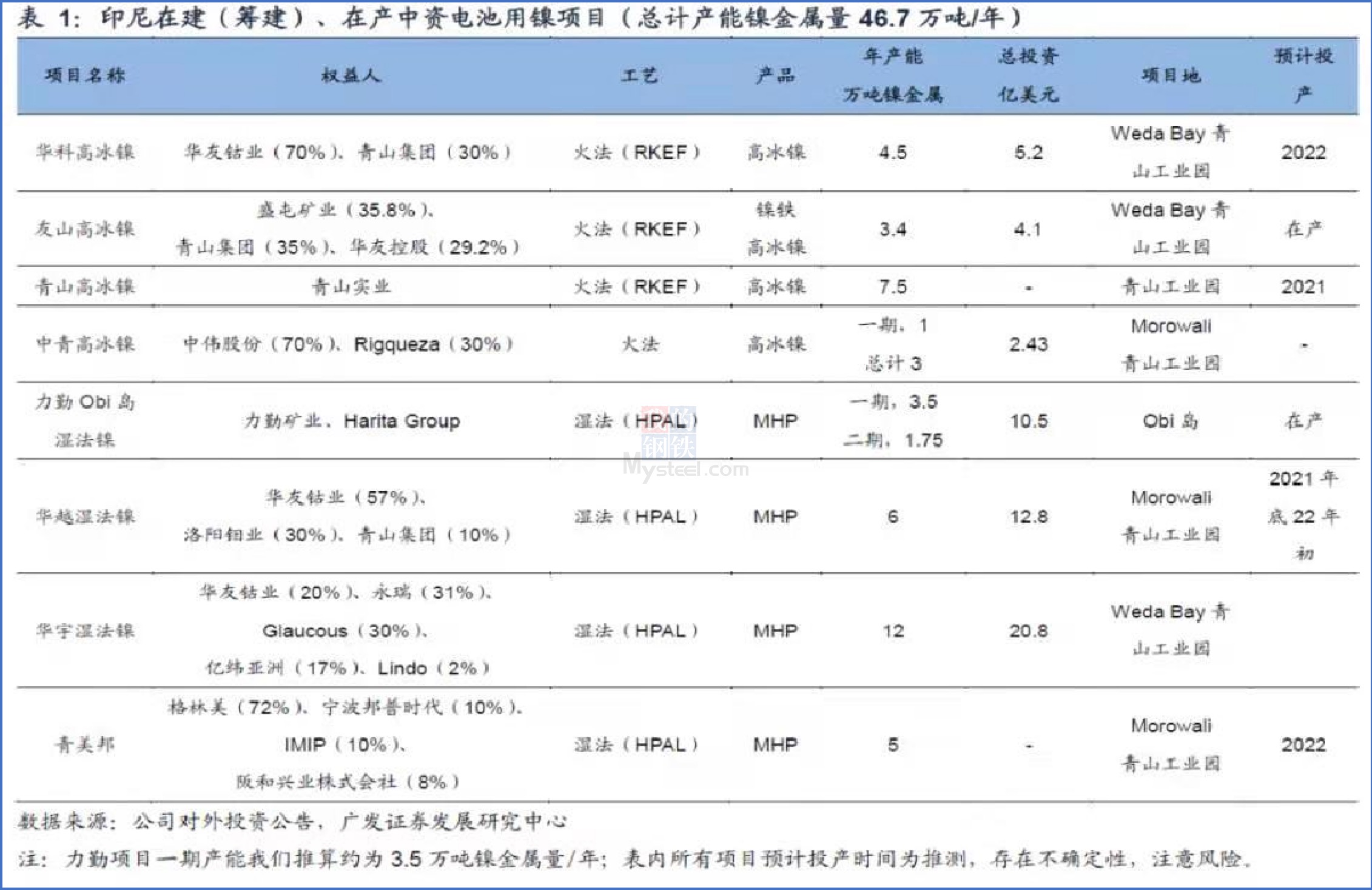 二、印尼镍产能三年预测