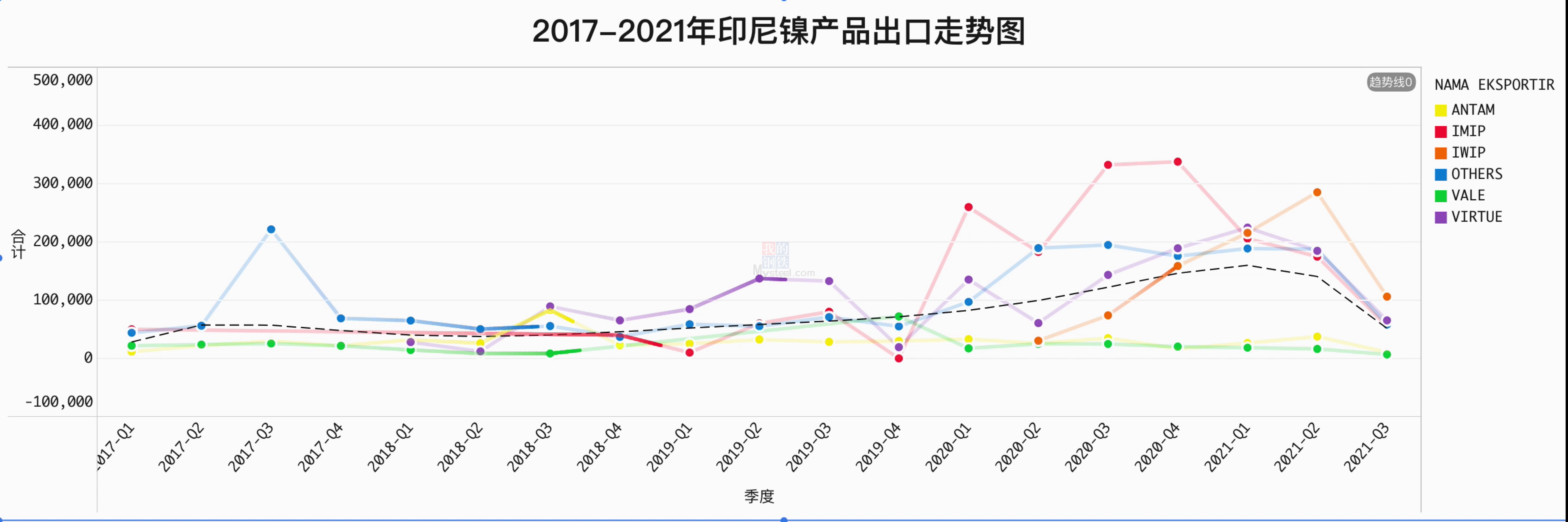 出口方面,近年来印尼安塔姆和VALE虽然都有建厂动作,但到目前都没有形成生产能力。印尼这几年的镍产品出口增量都是中国参与的企业贡献的。