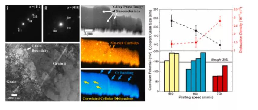 这项研究结果发表在《增材制造》11月刊上,它可能使未来通过在纳米尺度上修复缺陷,生产出高度耐腐蚀的不锈钢成为可能。该研究还表明,多模态同步加速器技术正在成为建立打印过程、材料底层结构及其实现性能之间相关性的重要工具。