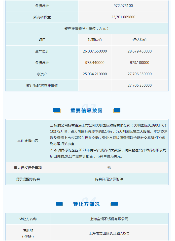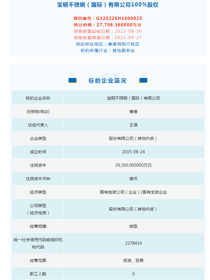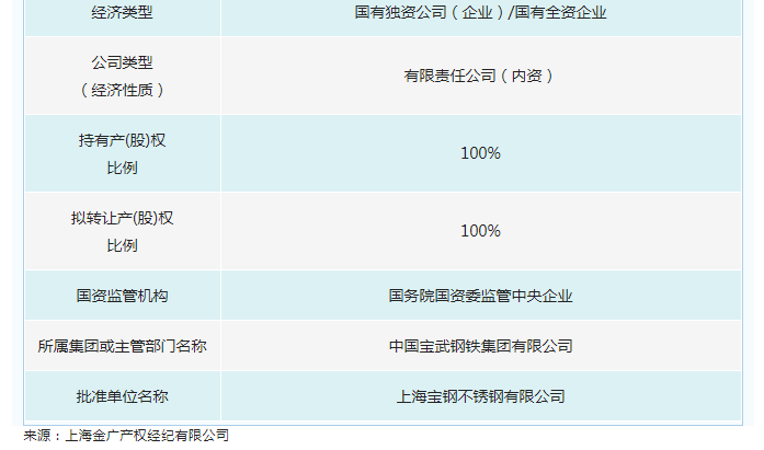 宝钢不锈钢(国际)有限公司100%股权公开转让