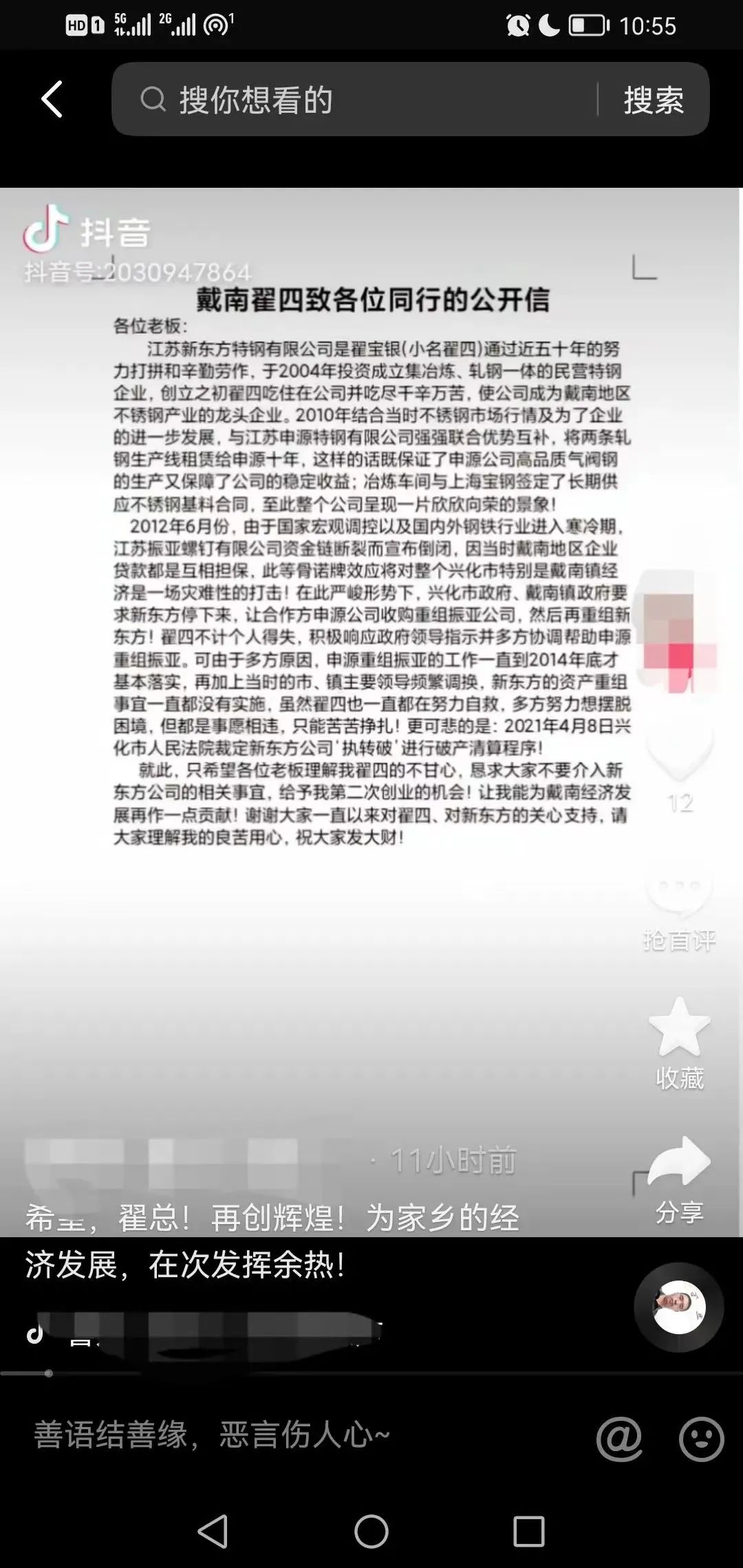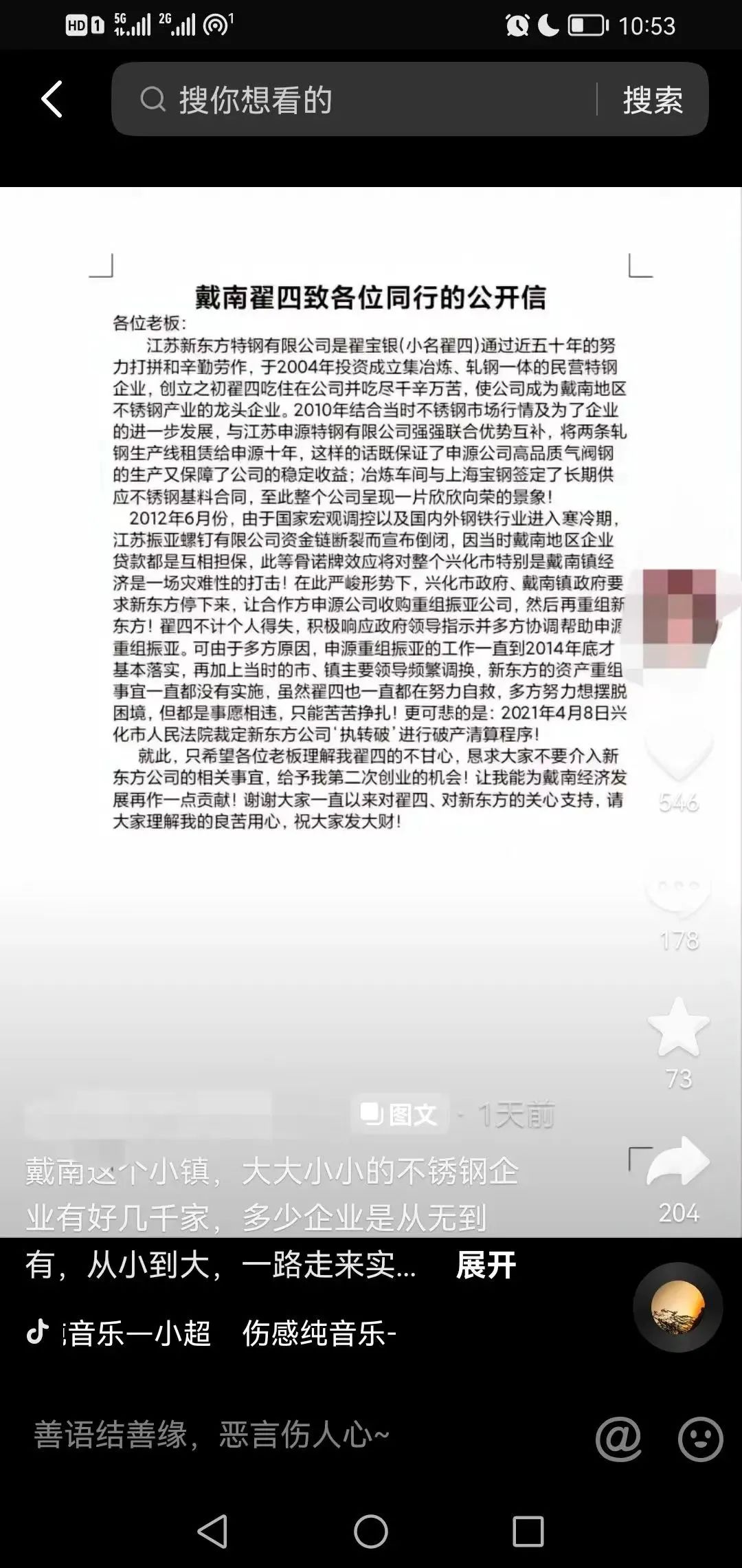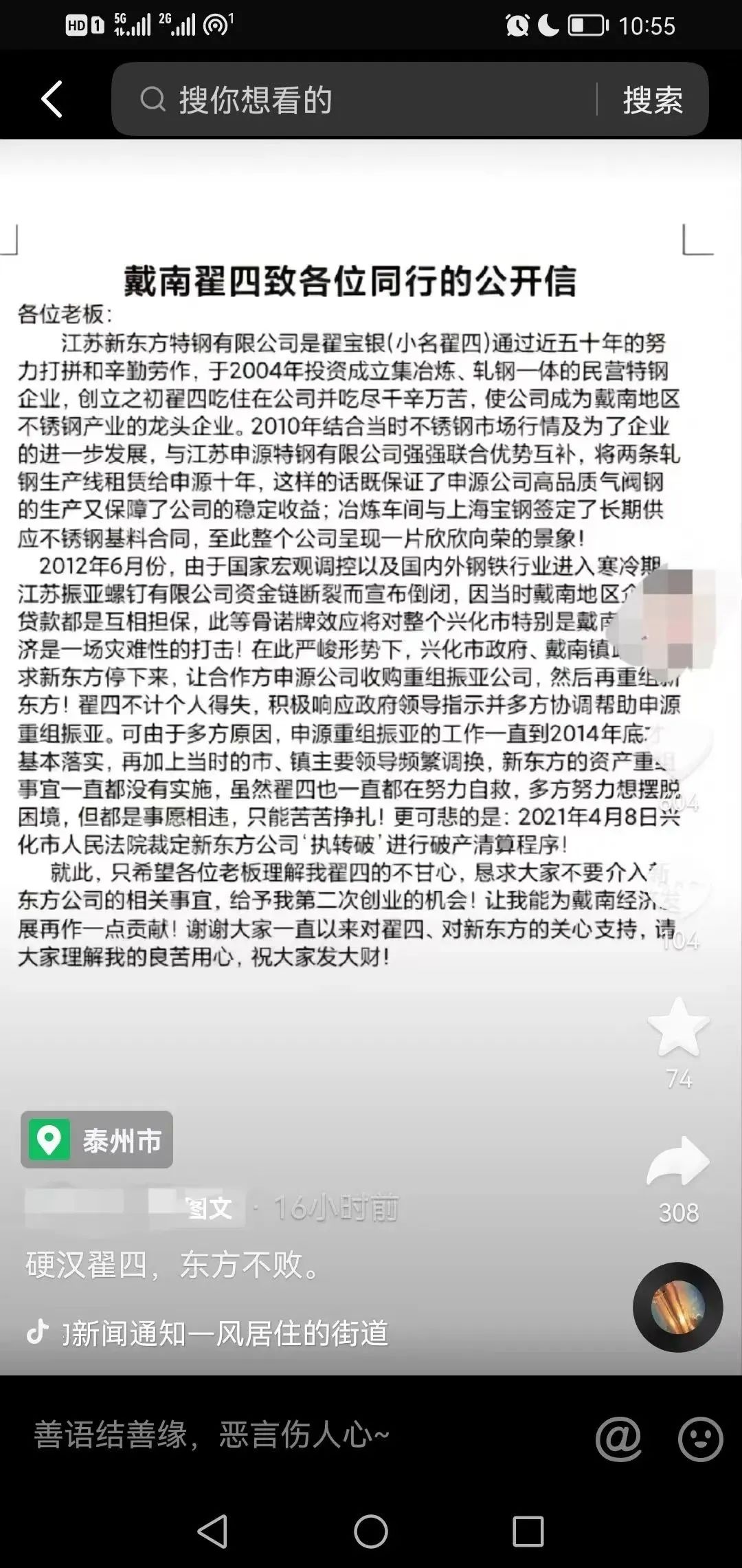 戴南一不锈钢企业老板的公开信