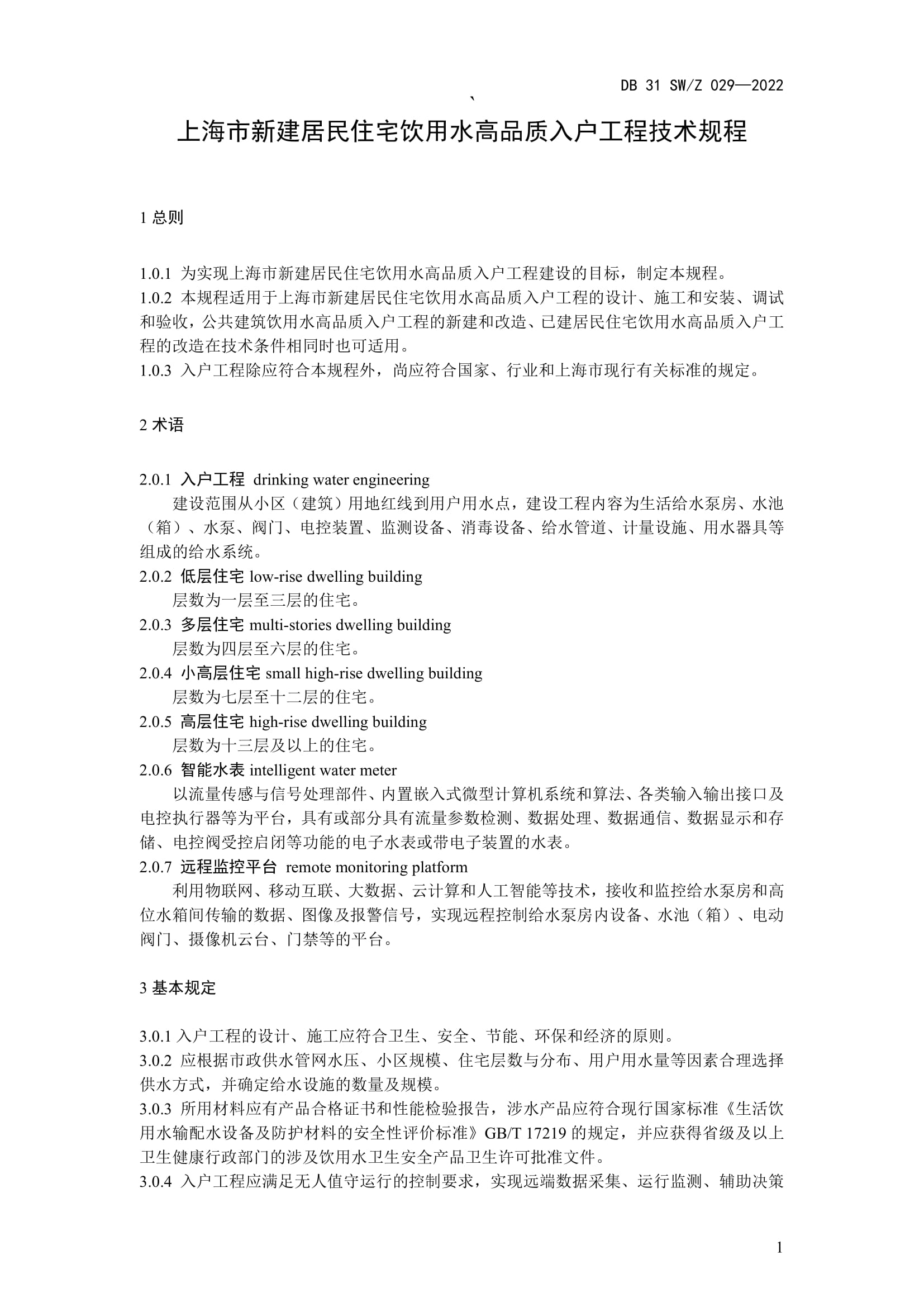 以下为《上海市新建居民住宅饮用水高品质入户工程技术规程》文本。