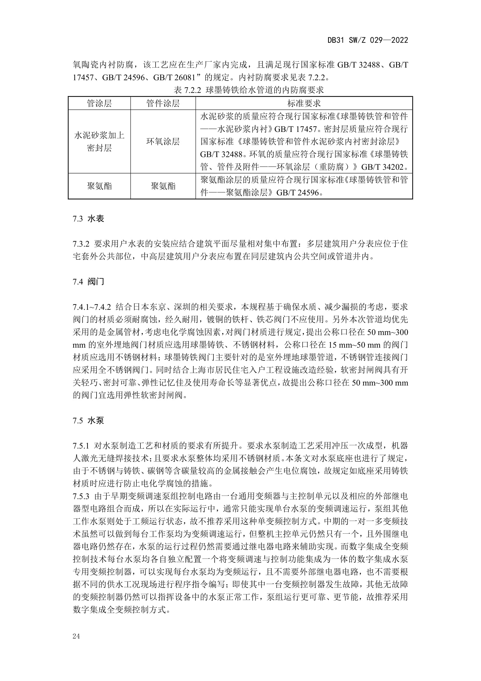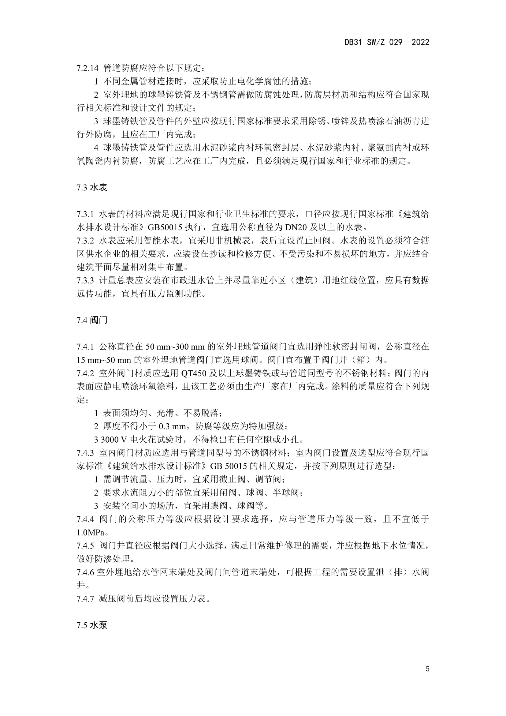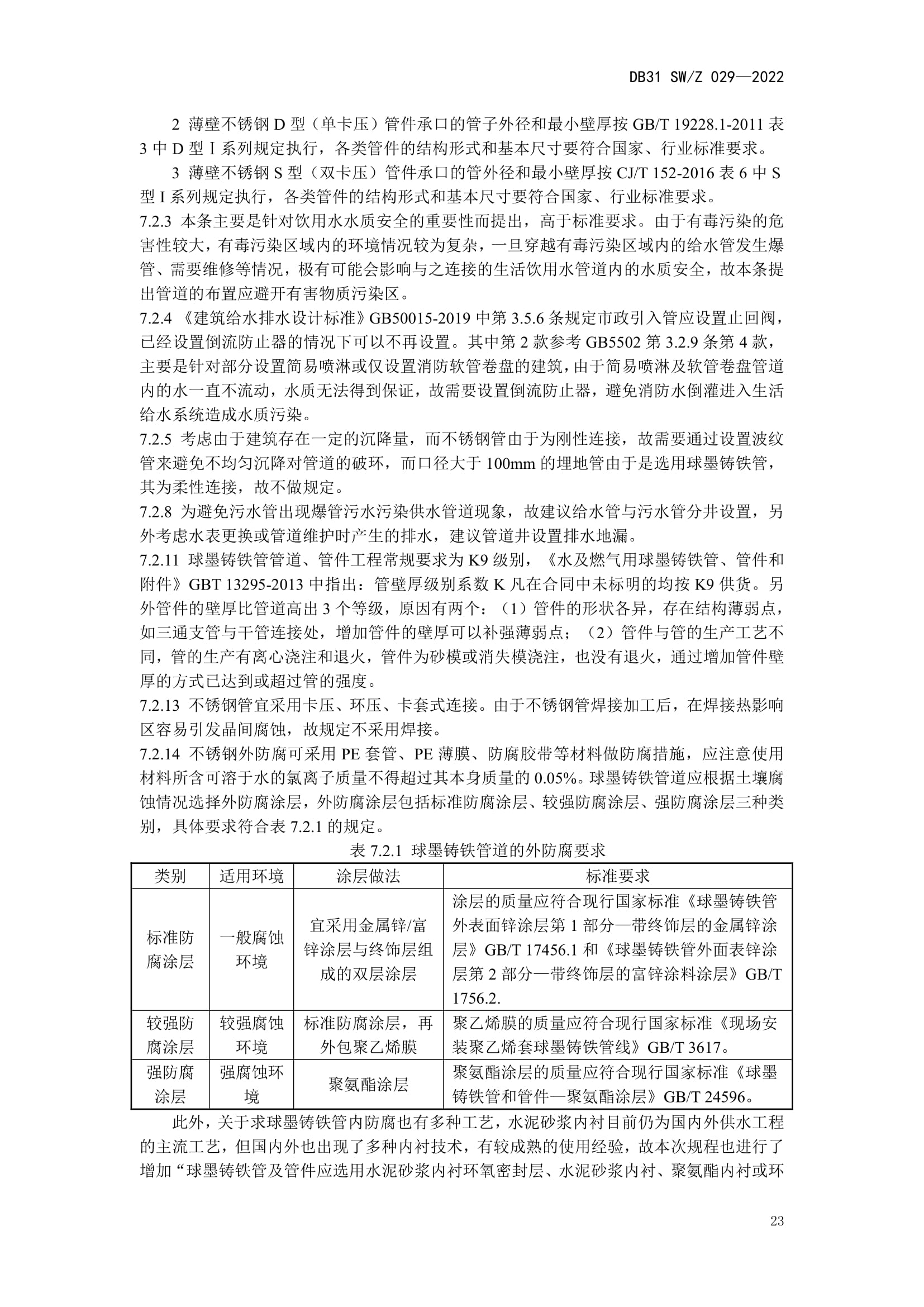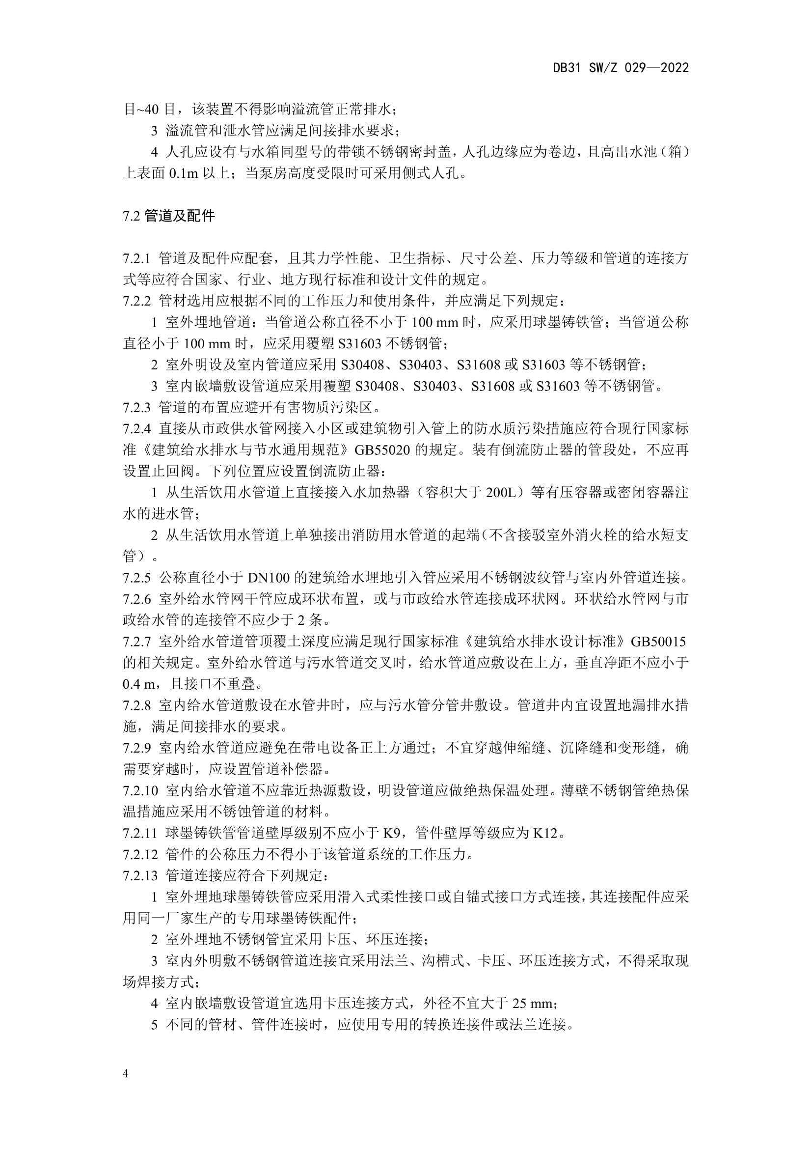 值得一提的是,该规程提出“管材选用应根据不同的工作压力和使用条件,并应满足下列规定:1、室外埋地管道:当管道公称直径不小于100 mm时,应采用球墨铸铁管;当管道公称直径小于100mm 时,应采用覆塑 S31603 不锈钢管;2、室外明设及室内管道应采用S30408、S30403、S31608 或 S31603 等不锈钢管;3、室内嵌墙敷设管道应采用覆塑S30408、S30403、S31608 或 S31603 等不锈钢管。”