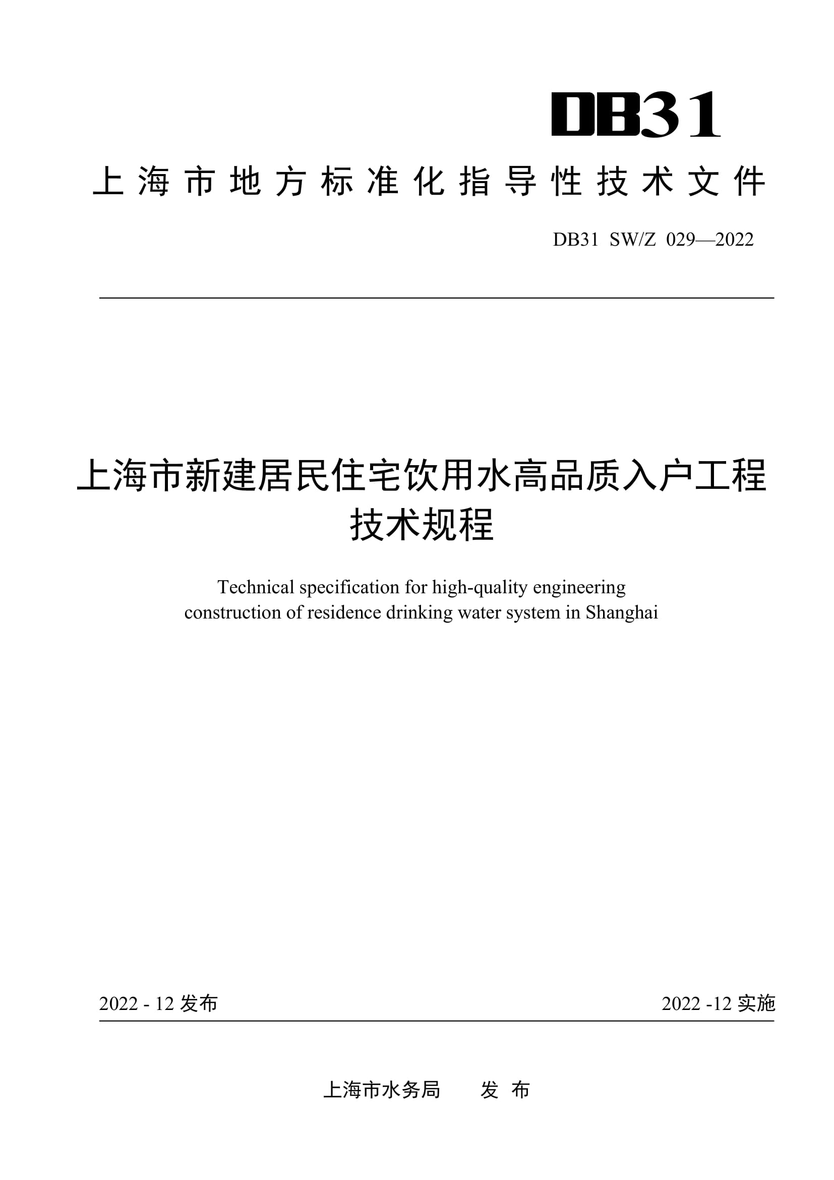 日前,《上海市新建居民住宅饮用水高品质入户工程技术规程》发布并于2022年12月起施行。