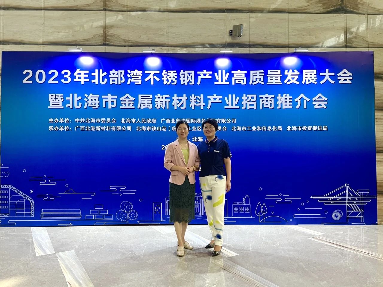 7月16日,由北海市委市政府、广西北部湾国际港务集团有限公司联合主办,广西北港新材料有限公司、北海市铁山港(临海)工业区管理委员会、北海市投资促进局、北海市工业和信息化局共同承办的“2023年北部湾不锈钢产业高质量发展大会暨北海市金属新材料产业招商推介会”在北海市举行。广东省不锈钢材料与制品协会秘书长、中国建材市场协会金属建材应用分会秘书长黄耿燕受林泽榆会长委托应邀专程前往祝贺并参加了7月15日的欢迎晚宴和16日的北港新材料客户研讨会。