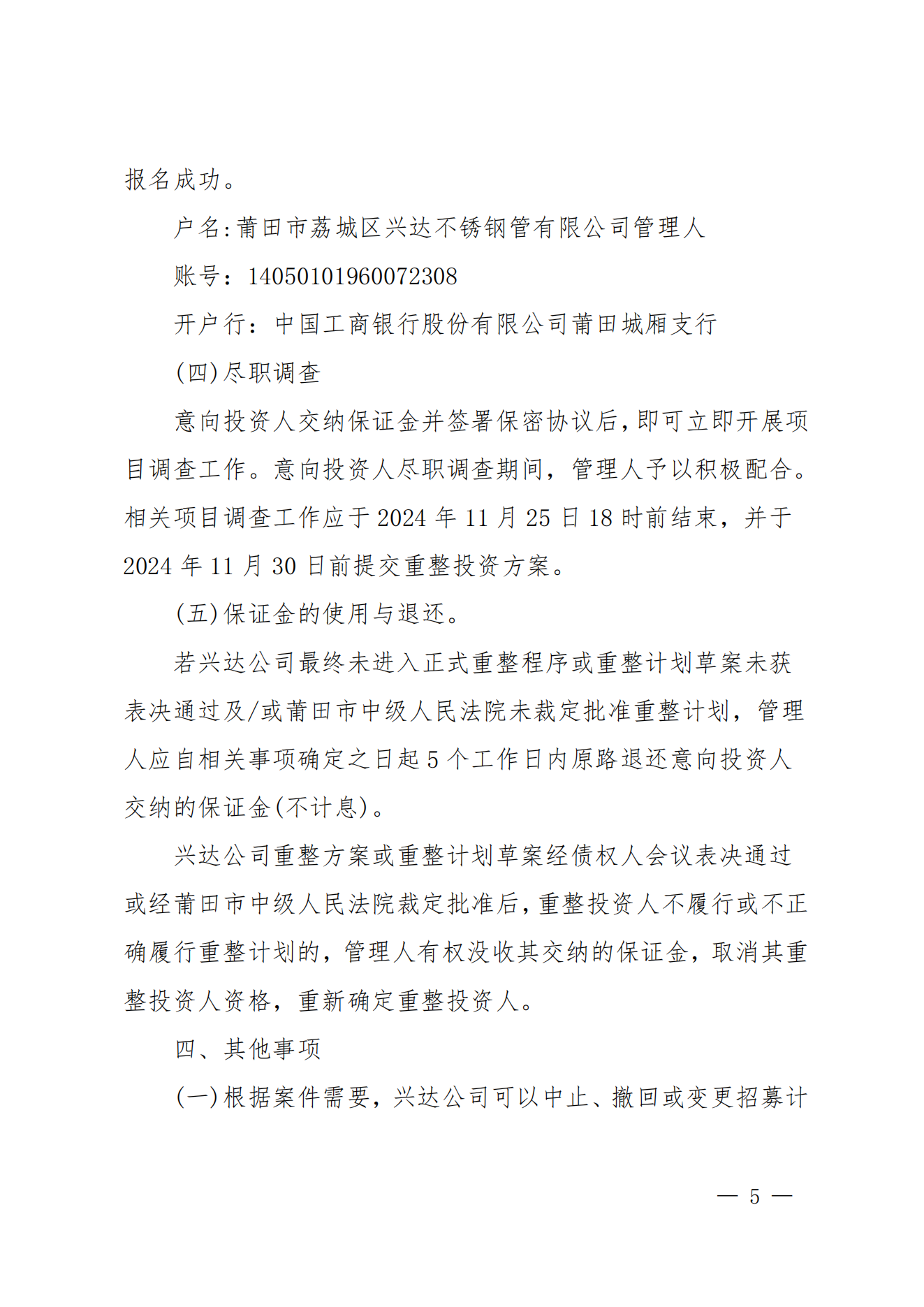 福建一不锈钢企业破产清算招募意向投资人