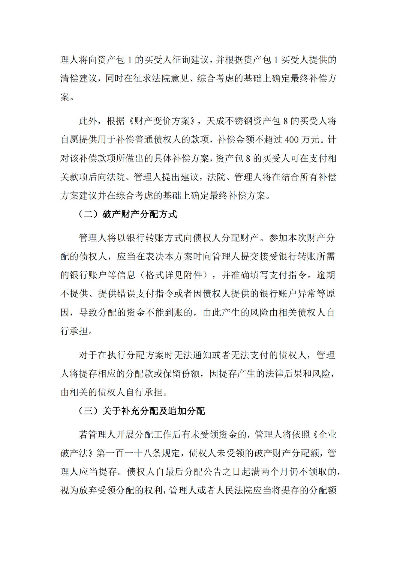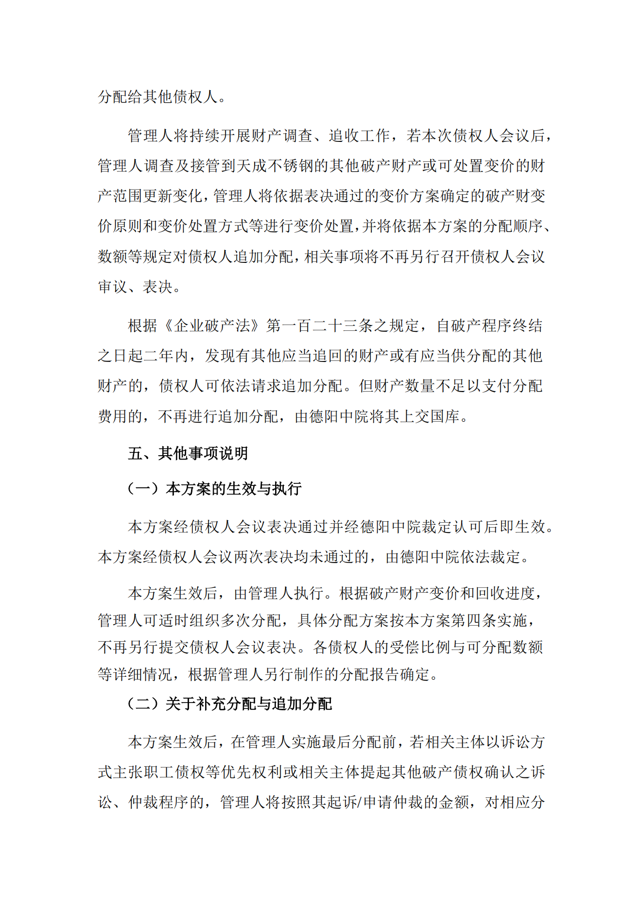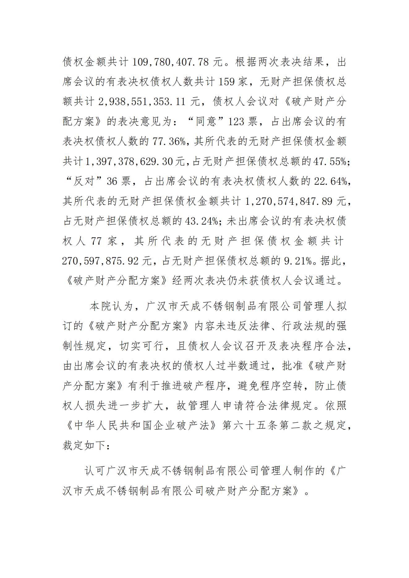 法院裁定认可一不锈钢厂破产财产分配方案