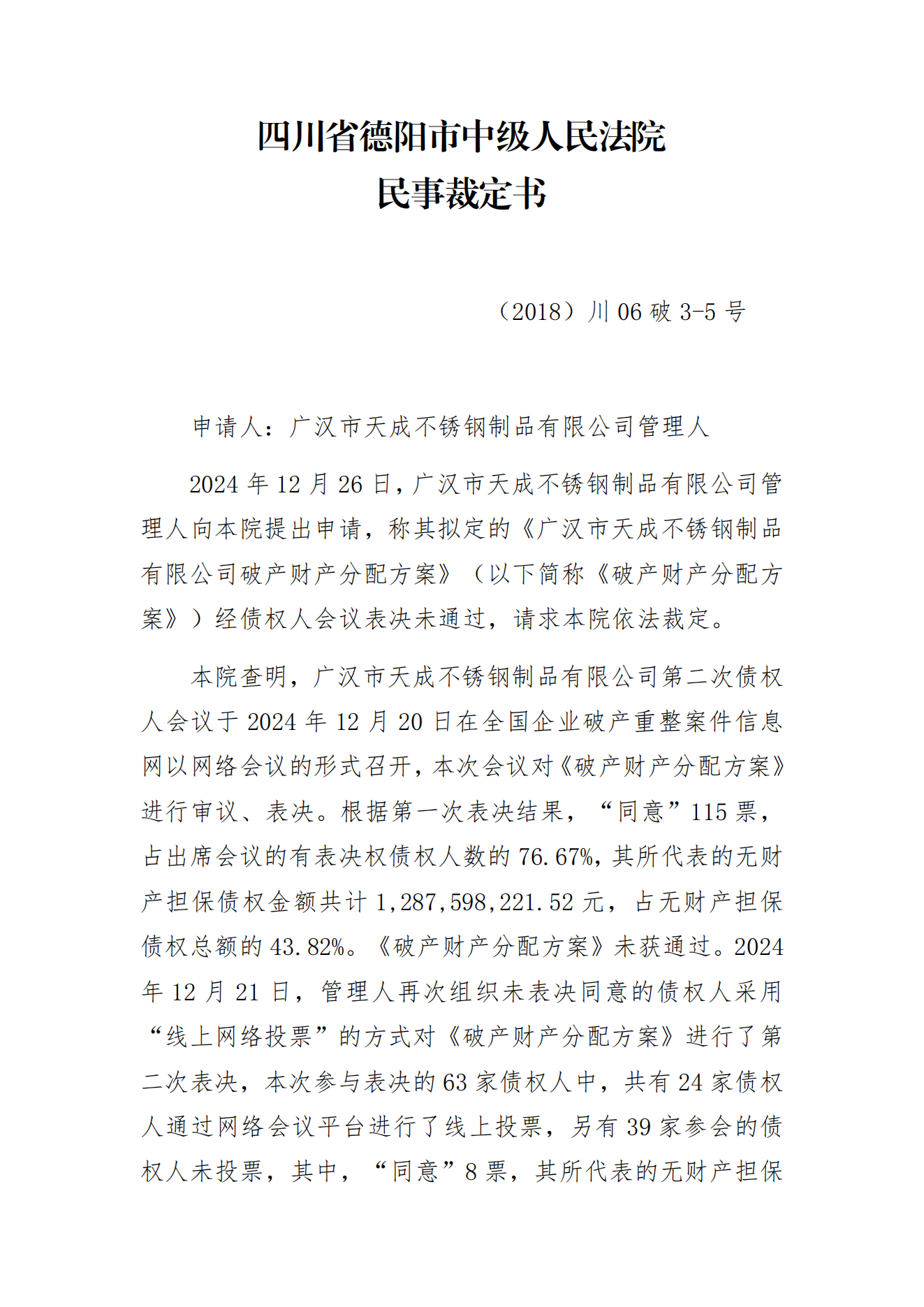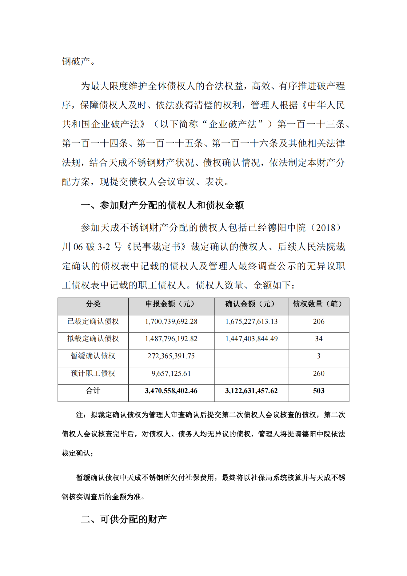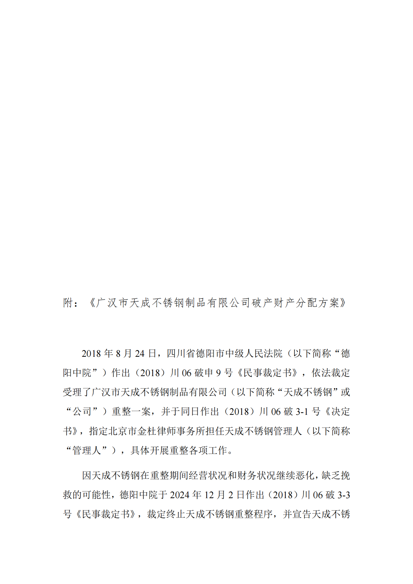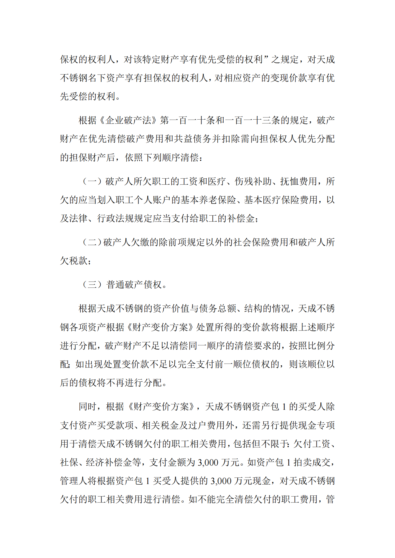 法院裁定认可一不锈钢厂破产财产分配方案