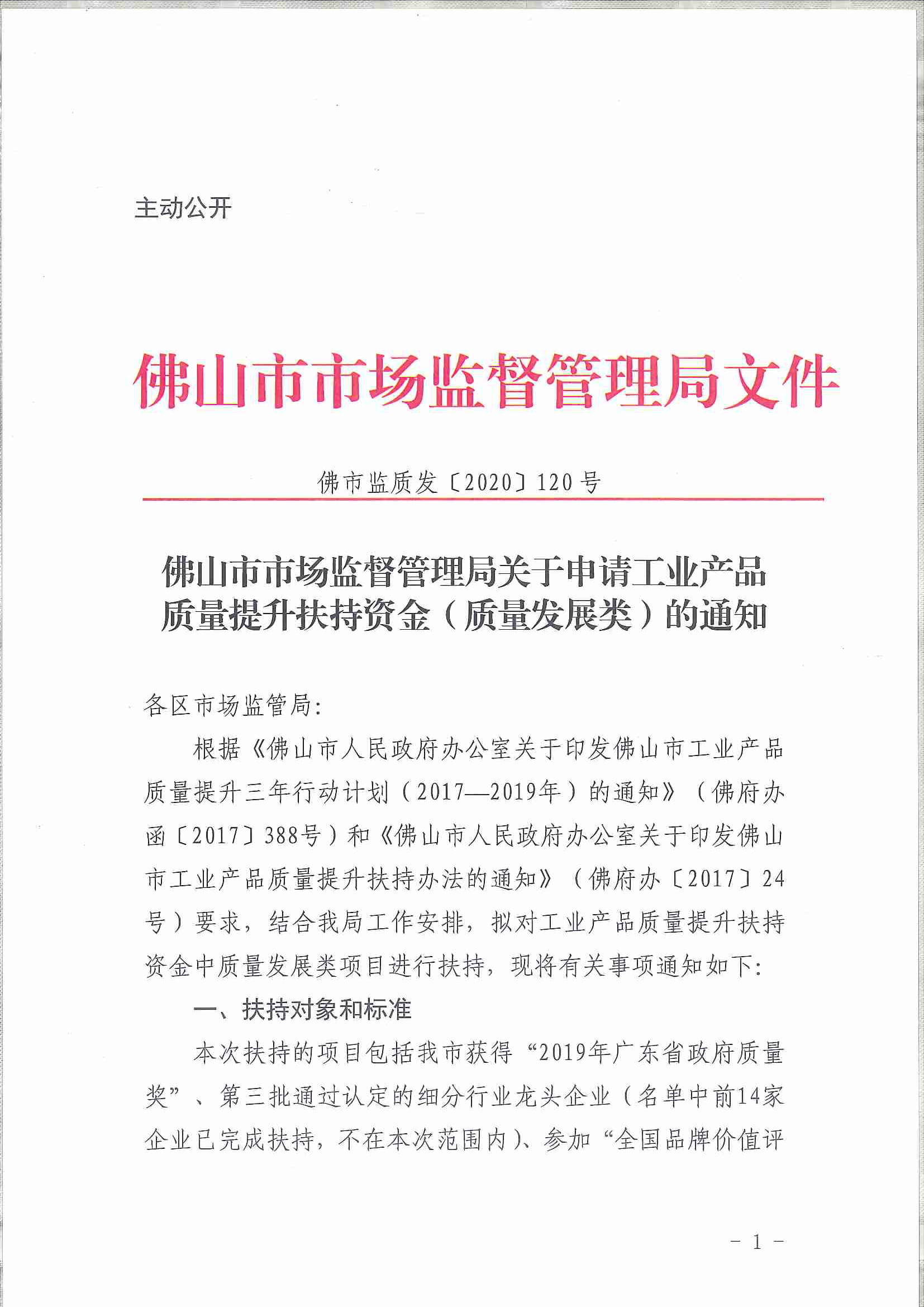 关于申请工业产品质量提升扶持资金(质量发展类)的通知