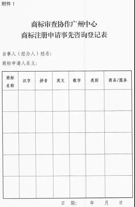 附件1:商标审查协作广州中心商标注册申请事先咨询登记表