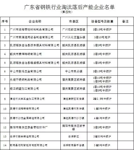 关于广东省钢铁行业淘汰落后产能企业名单(第四批)的公示