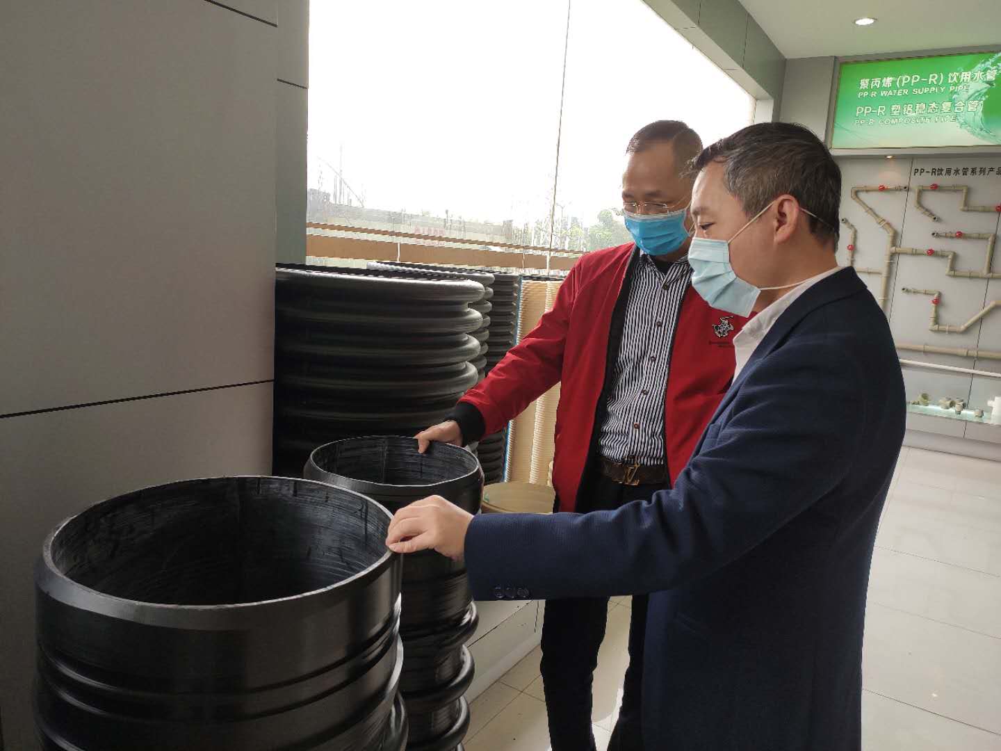 林泽榆一行首先参观了雄塑集团展厅,详细了解了雄塑集团的发展情况和新型产品。