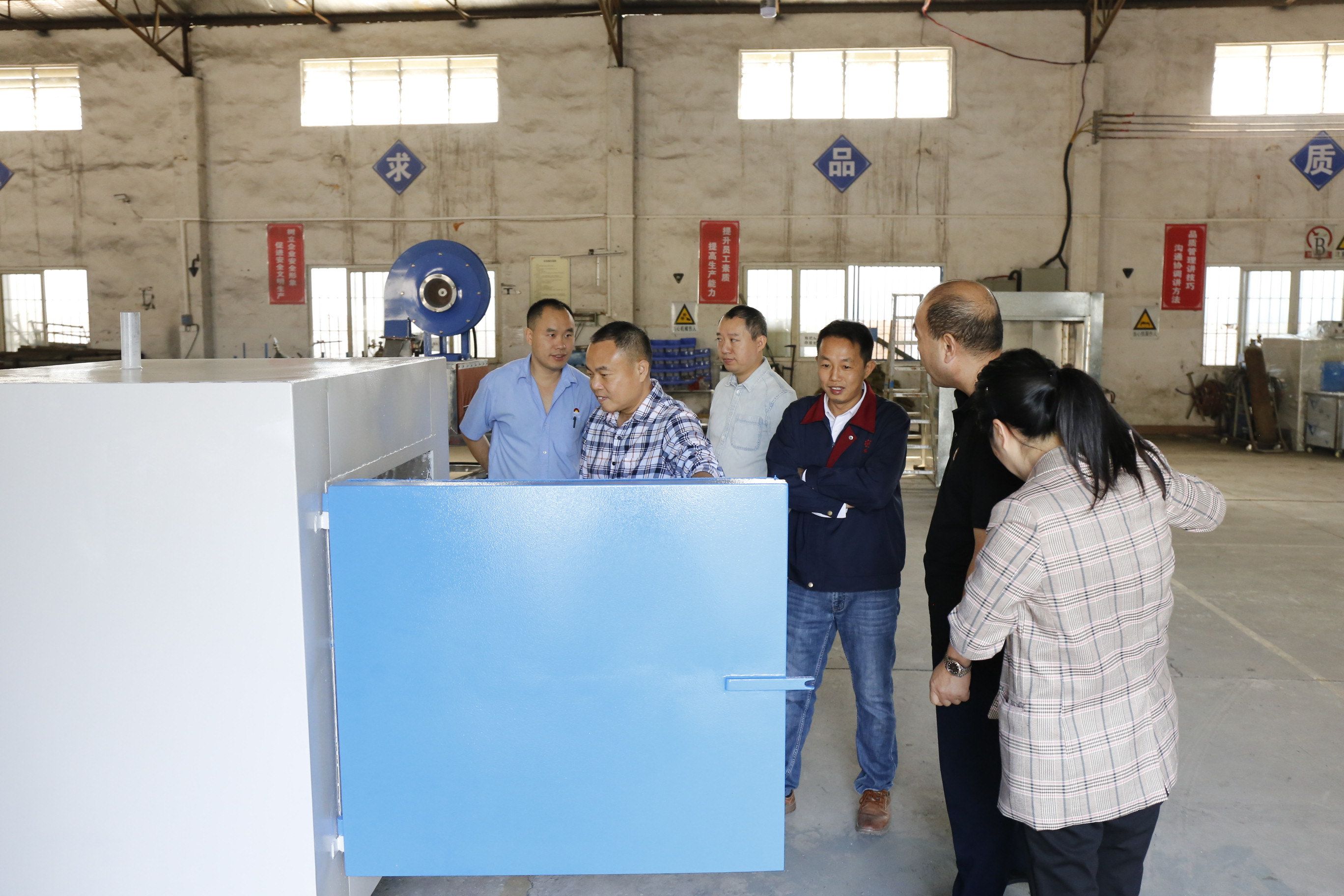 座谈结束后,一行人在旷斌文总经理的陪同下参观了先泰不锈钢水管管件清洗设备、不锈钢彩钢板贴膜前清洗设备等生产车间。大家对于其立足细分领域并深耕市场所取得的业绩予以赞赏。
