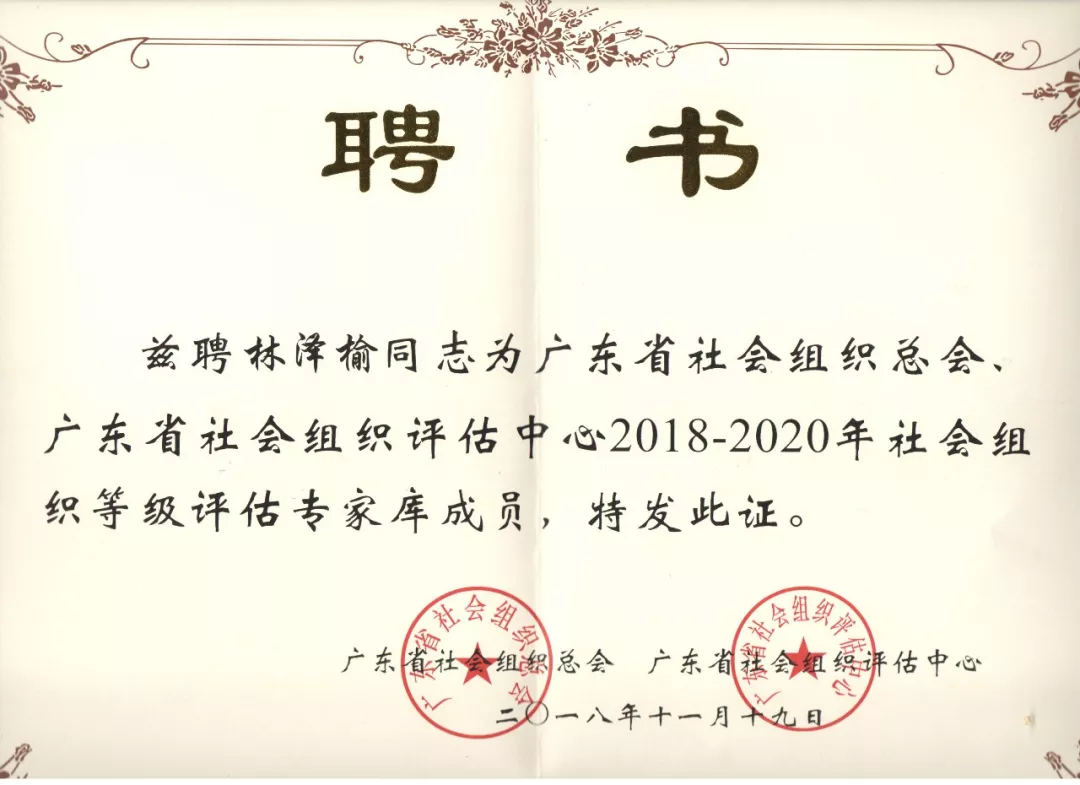林泽榆获聘为广东省社会组织等级评估专家