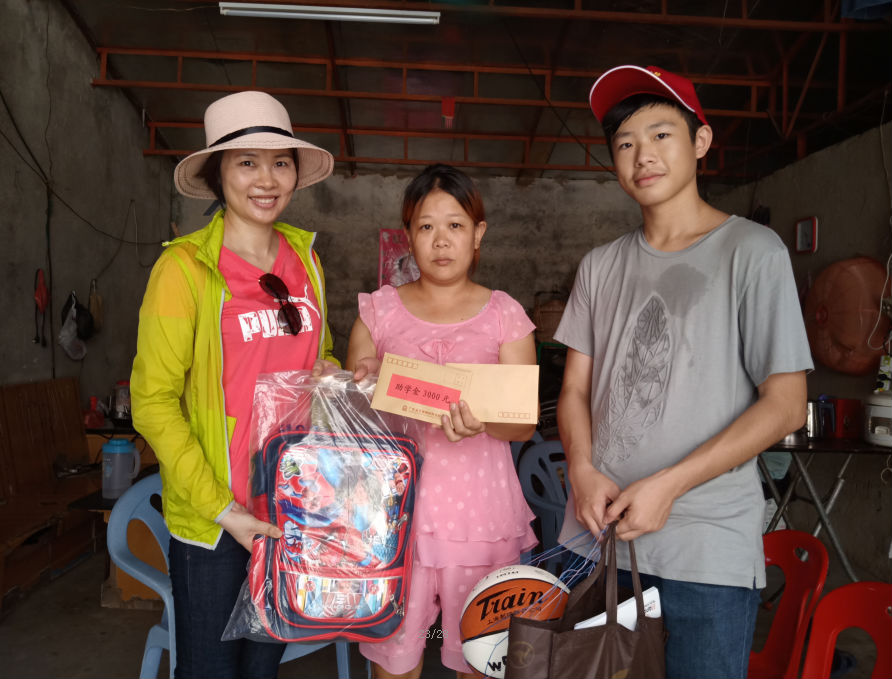 2、许泽森12岁、许泽丰9岁,父亲许丙葵生前肢体一级残疾,现已死亡,其母亲离家出走,如今也下落不明,现监护人为60多岁的祖父许汉顺。生活困难,目前政府有500元补助,靠祖父打工为生。组员们发现家里墙上贴满奖状,两个孩子成绩优秀。组员们为孩子送上助学金及学习用品,鼓励孩子好好学习。