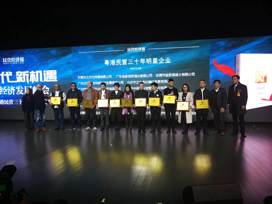 会上,《民营经济报》社表彰了恒大、富力、格兰仕、志高等一批知名企业为“粤港民营三十年卓越成就企业”;同时授予我会“粤港民营三十年优秀协会”荣誉牌匾。我会会长单位旗下光丰(肇庆)钢业有限公司则与华帝股份有限公司等企业获颁“粤港民营三十年明星企业”。这是主流媒体对我会成立四年来的工作给予的肯定和褒奖。