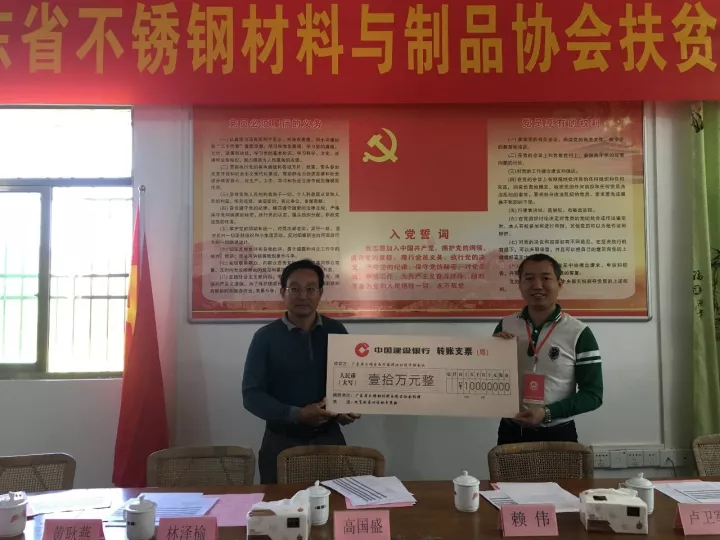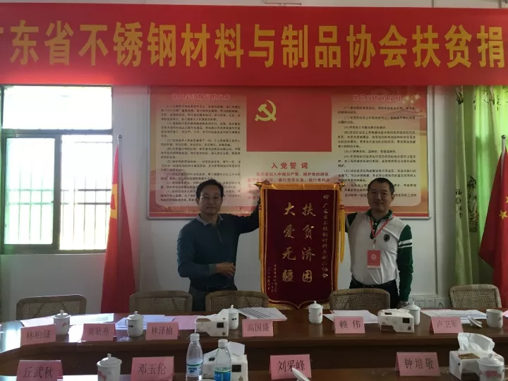 金秋送爽,丹桂飘香。在党的十九大胜利闭幕之际,10月23-24日,广东省不锈钢材料与制品协会(下称我会)专职执行副会长兼秘书长林泽榆、常务副秘书长黄耿燕、常务副会长单位广东炜联长城总经理助理林柏健、副会长单位中成不锈钢经理高岗一行4人赴梅州市大埔县西河镇漳北村开展扶贫献爱心活动,这是我会继云浮郁南、阳江阳春后,今年来开展“用真情•传递爱”扶贫献爱心活动的第三站。我会一行人受到大埔县委副书记、县长熊锋松,副县长饶凌云等县领导的热情欢迎和接待。