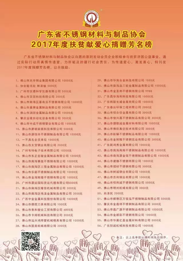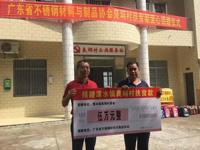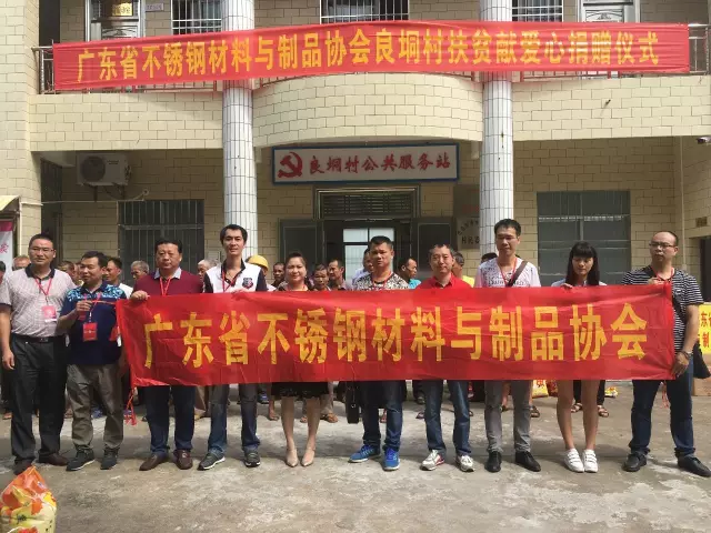 9月5-6日,继云浮郁南桂圩镇平全村后,“用真情•传递爱”--广东省不锈钢材料与制品协会(下称我会)2017年度扶贫献爱心公益活动开展第二站之行:阳春市潭水镇良垌村,受到阳春市委市政府的热烈欢迎和接待。受我会56家(位)爱心会员单位和个人委托,专职执行副会长兼秘书长林泽榆、副会长、狮皇不锈钢董事长李金武、副会长陈智辉代表、恒丰不锈钢总经理陈智广、副会长孙峰代表、再辉不锈钢销售总监陈建平、副会长梁盛基代表、润田不锈钢总经理助理林珣、理事、盾牌金属总经理魏丽丽、伟泷金属董事长梁伟林等一行11人参与此次活动。