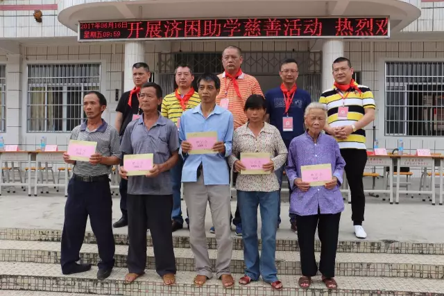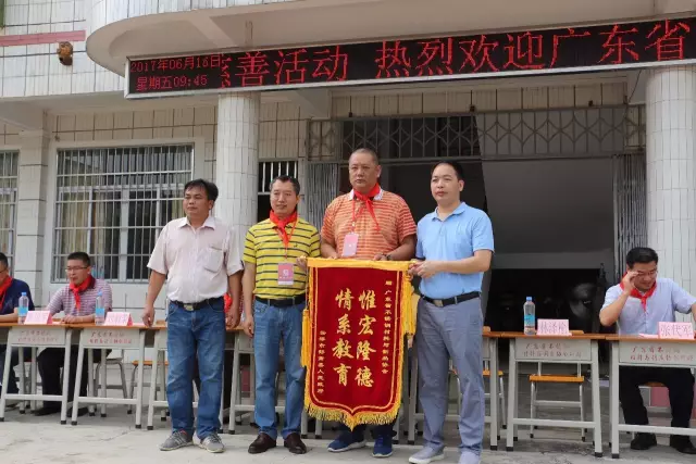 仪式上,我会向平全小学品学兼优的特困家庭学生发放了助学金;受郁南县人民政府的委托,桂圩镇镇长刘炳荣向我会赠送了一面印有“情系教育,惟宏隆德”的锦旗。