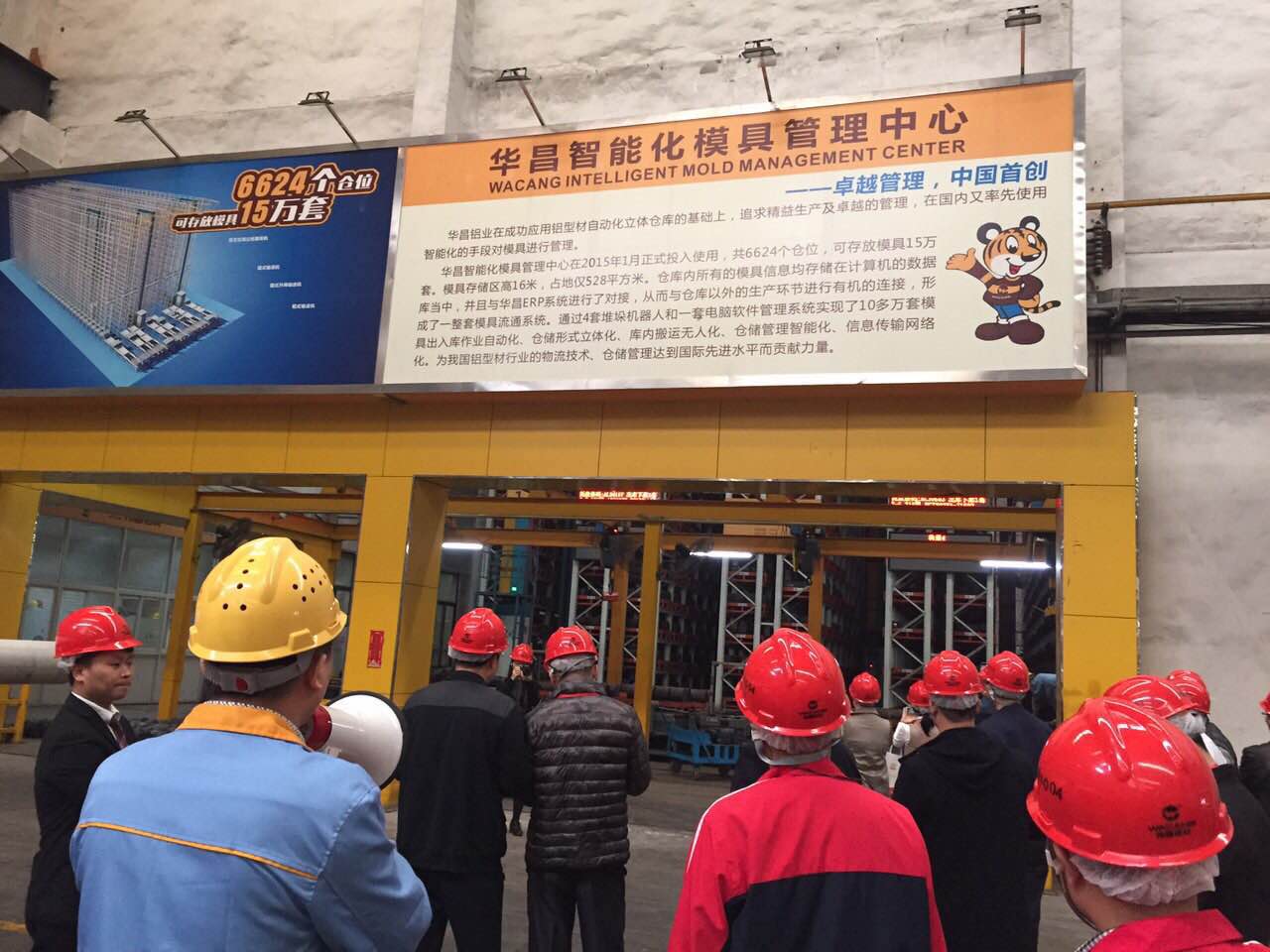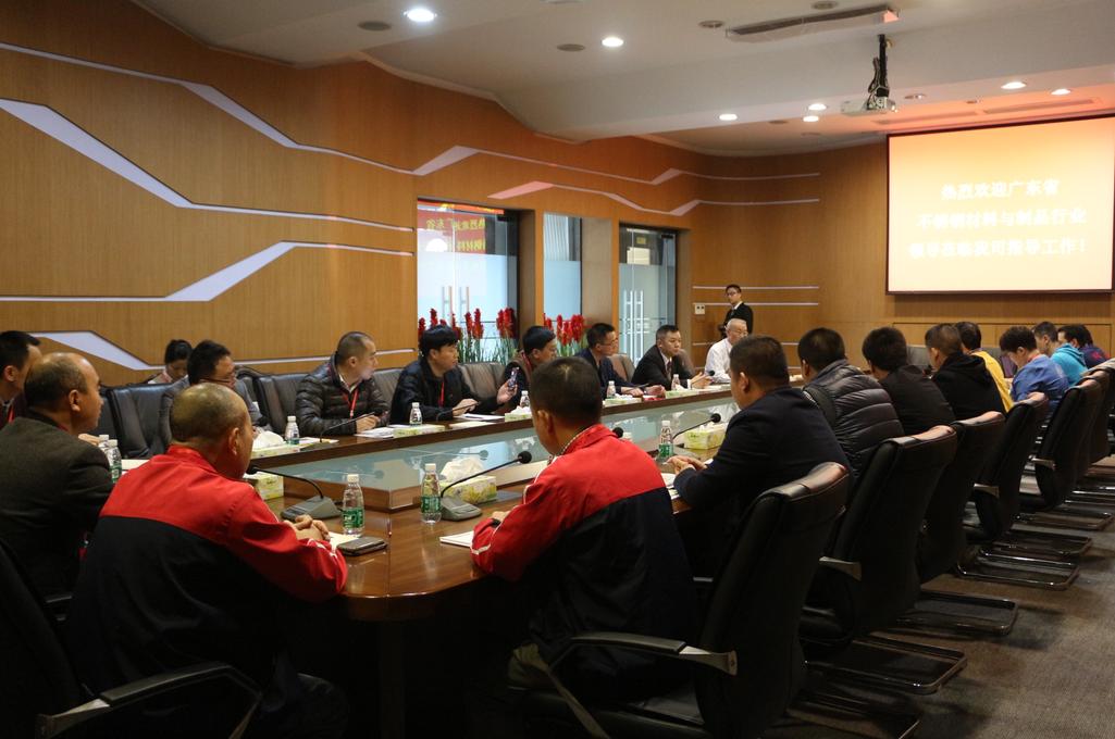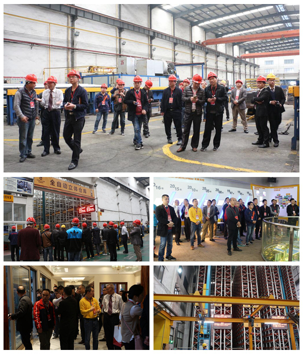 随后,在唐性宇总工程师等陪同下,一行人兴致勃勃地参观了华昌企业荣誉室、产品体验厅以及生产车间。一行人首先来到其荣誉室,浏览华昌的发展历史和主要荣誉并观看了企业宣传片;观摩了设计布置高端大气新颖的产品体验厅,一批附加值高的铝型材产品工艺精致,设计独特且智能化,完全衬托出产品的卓越品质,给我会一行人留下了深刻印象。紧接着参观了华昌的生产车间,依次参观了模具车间、挤圧车间、中转车间、氧化电泳车间、包装车间、全自动立体仓库等,其各车间功能区域性明显、科学、规范、有序、整洁,车间装备齐全、行业领先,多采用电脑自动化加工,特别是投资3700多万元的自动化立体仓库是该行业内第一家,引起了中央电视台的关注和报道。对此,我会一行人给予了极高的评价,纷纷认为此举对于目前不锈钢管行业的仓储模式来说是一种革命性的创新,可供借鉴的经验实为宝贵。