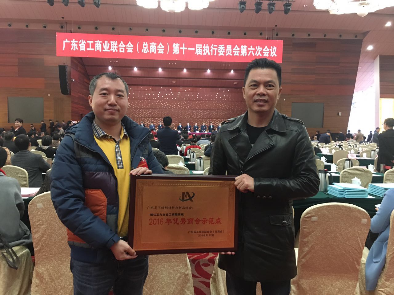 在2016年全省工商联优秀商会示范点的评比中,我会以扎实有效的工作、规范和谐的运作赢得了省工商联的认可和鼓励,在众多商协会中脱颖而出获得省级10家示范点之一。会上,林雄常委亲自为我会颁发获奖牌匾,林泽榆代表协会上台受牌。