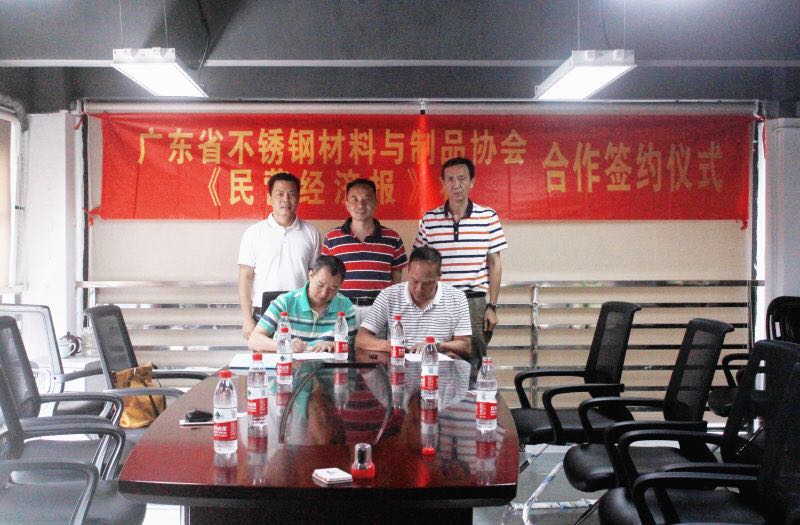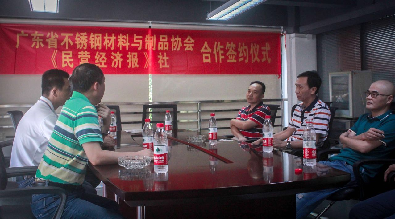 为深入贯彻国务院《社会信用体系建设规划纲要(2014-2020年)》等一系列文件精神,昨日下午,广东省不锈钢材料与制品协会(下称“我会”)与《民营经济报》社举行广东省不锈钢行业“诚信经营”示范创建活动签约仪式。我会会长吴伟斌、 专职执行副会长兼秘书长林泽榆与《民营经济报》社总编辑游梦华、副总编张浩、社委徐成出席了签约仪式并展开座谈,双方就后续的工作及下一步的深度合作进行了深入探讨。