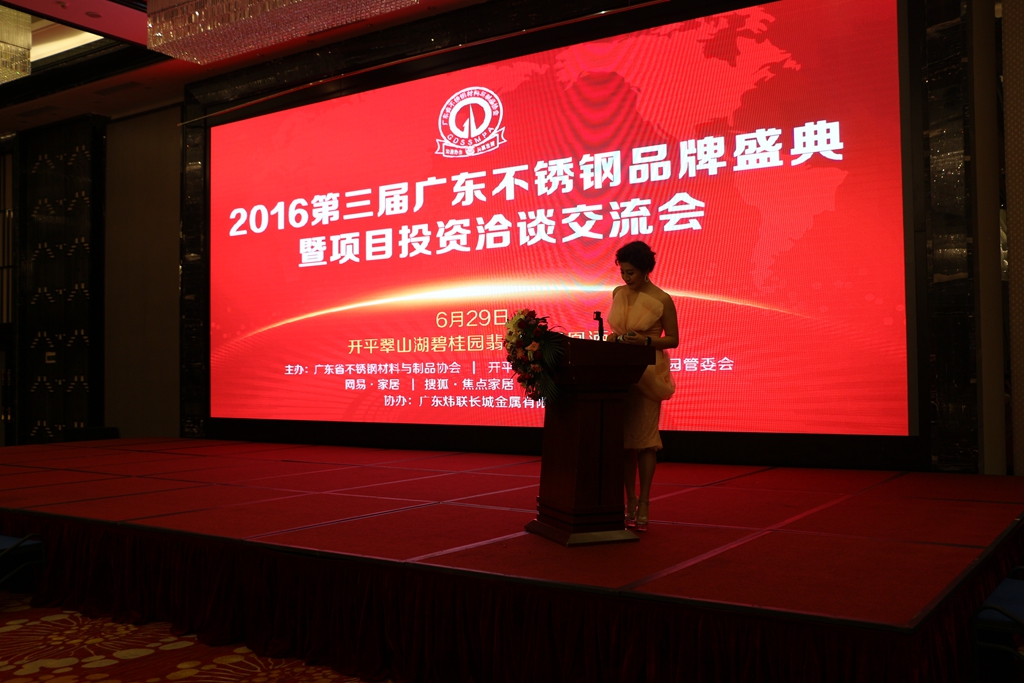 6月29日下午,由广东省不锈钢材料与制品协会、广东不锈钢网牵头并联合开平市翠山湖产业转移工业园管委会、网易•家居、搜狐•焦点家居共同主办,广东炜联长城金属有限公司协办的第三届广东不锈钢品牌盛典暨项目投资洽谈交流会在广东开平碧桂园翡翠湾凤凰酒店成功举行,广东电视台节目主持人聂筱霏担纲主持。
