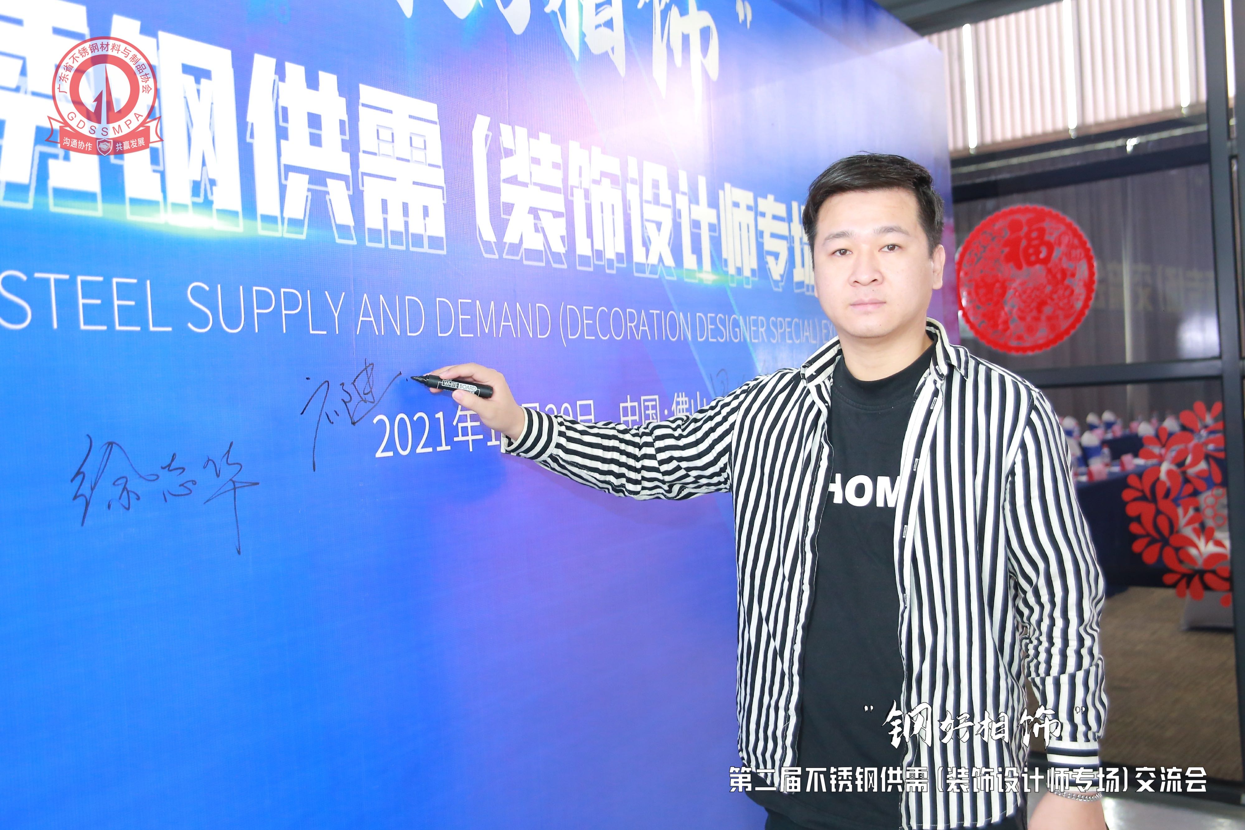 林会长表示,中国已成为名副其实的全球不锈钢生产与消费中心,以佛山为核心的广东不锈钢又是中国不锈钢产业版图中特别重要的一部分。可以说,有家就有不锈钢,不锈钢的应用越来越广泛,甚至是随处可见,比如不锈钢门、楼梯扶手、消毒碗柜、微波炉、燃气灶、不锈钢橱柜、衣柜、酒柜、浴室柜、淋浴房等等。许多设计师一直都在关注和推动着不锈钢行业的发展,随着不锈钢定制和不锈钢装饰材料关注度的提升,近年来得到了包括设计师在内的更多的关注和选用。希望今天的交流会能够让更多的装饰设计师更深入的了解不锈钢行业目前优秀的产品和创新的工艺,以及深入了解被社会逐渐青睐的不锈钢水管这一领域。林会长指出,不锈钢材料具有卫生、时尚、大方、靓丽、耐蚀、环保、长寿、100%可以回收等综合性能优势,是可以更好满足人民日益增长的美好生活需要的一种绿色建材。建议装饰设计师今后能够把更多的不锈钢元素考虑进去,选用广东不锈钢的优质产品,加速更多不锈钢新创意、新工艺、新产品和优品精品推向装饰设计市场。期盼不锈钢行业与装饰设计师紧密携手,将两个领域持续的牵手走得更好更稳,实现更好融合发展。