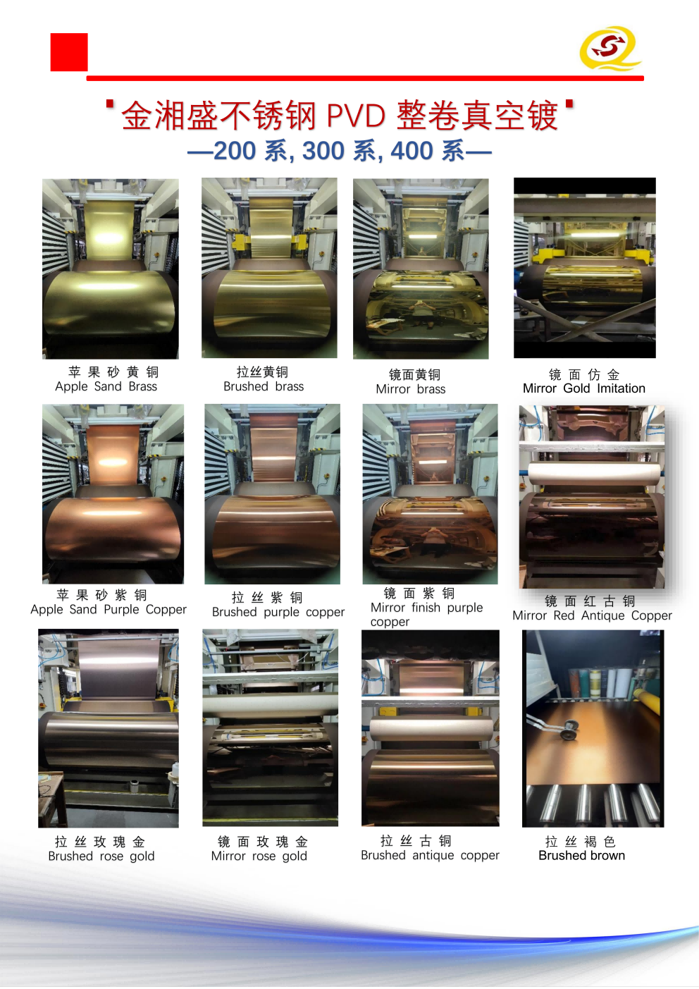 佛山市金湘盛金属材料有限公司成立于2018年9月,公司现有压延机、制管机、拉矫机、抛光机、磨砂机、压花机、8K机、分条机、平板机,并有两条由德国引进先进的金属带材真空镀膜生产线和两条自动化高速滚涂金属卷材生产线,配备了完整的不锈钢前后加工配套产业链。