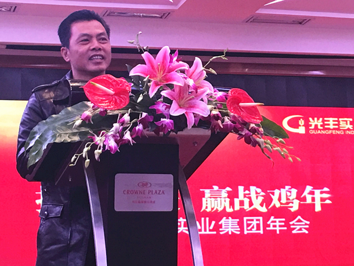迎接新一年,跨越绘蓝图!1月14日晚,我会会长单位光丰集团“携手奋进 赢战鸡年”佛山地区年会在佛山皇冠假日酒店三楼会议室隆重举行,年会现场欢声笑语,其乐融融。我会会长、光丰集团董事长吴伟斌先生、总经理詹洁容女士及其佛山区域员工近百人共聚一堂、总结过去、畅想未来、喜迎新年。我会专职执行副会长兼秘书长林泽榆携秘书处同事应邀出席。