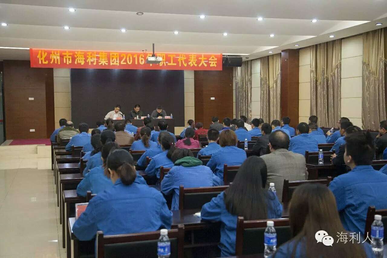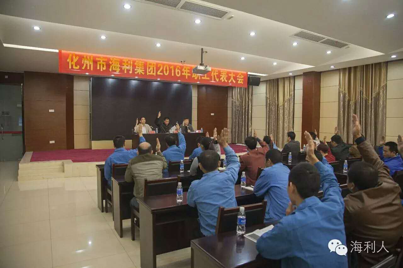 2016年11月10日上午,我会常务副会长单位化州市海利集团2016年职工代表大会胜利召开,此次职代会应到会代表72人,实际到代表51人,请假和已经离职代表21人,到会人数符合法定代表人数要求。会议审议并通过了《广东省化州市海利集团有限公司不锈钢制管厂整体改制为广东昌华海利科技有限公司方案》和《广东昌华海利科技有限公司监事会职工代表名单》。我会常务副会长、海利公司董事长李儒昌出席会议,钟信副总经理主持会议。会上,财务总监李卡宣读了《广东省化州市海利集团有限公司不锈钢制管厂整体改制为广东昌华海利科技有限公司方案》,钟信副总经理宣读了《广东昌华海利科技有限公司监事会职工代表建议名单》,李儒昌董事长做了重要讲话。