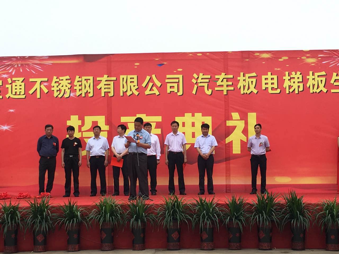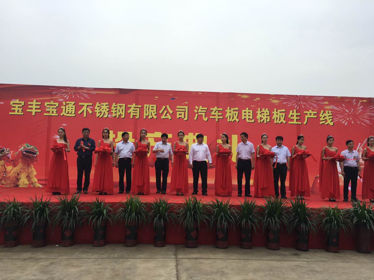 【广东不锈钢网】快讯 今日(6月2日)上午,由广东省不锈钢材料与制品协会常务理事李海卿先生投资建设的河南宝丰县宝通不锈钢有限公司在中原不锈钢产业园举行汽车板电梯板生产线投产庆典仪式,多方来宾纷纷表达了对宝通盛大启航的祝福。河南省宝丰县县长许红兵、县委常委赵二成、副县长魏学君、北京科技大学教授王铁、湖北大学教授王海人和上海爱默生电梯、深圳德奥电梯、江苏施塔德电梯、山东华烨集团等政府、高校、合作企业、金融机构有关领导、嘉宾出席;佛山市光丰钢业集团有限公司总经理詹洁容、广东省不锈钢材料与制品协会副秘书长黄耿燕代表协会出席祝贺。