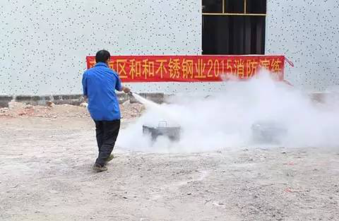 和和不锈钢业为提高全员消防意识,增强员工在紧急情况下的应变能力、自我防护能力,使每个员工掌握一定的消防知识,消除火灾隐患。在2015年10月30日围绕“全民关注消防,生命安全至上”为主题,举行消防演练,学习了相关消防知识和消防器材的使用方法,并掌握消防逃生技能及注意事项等。