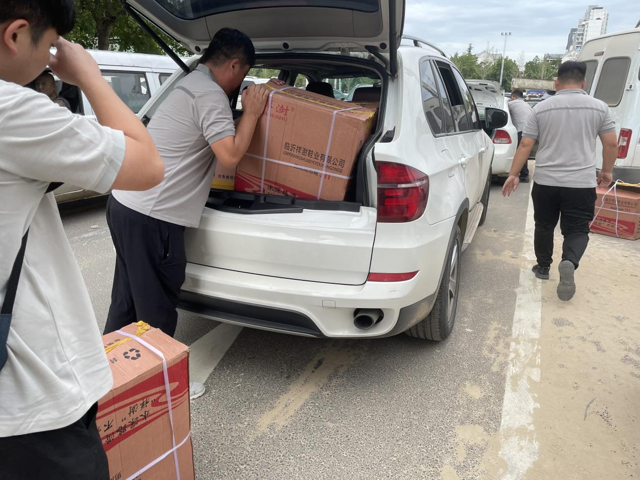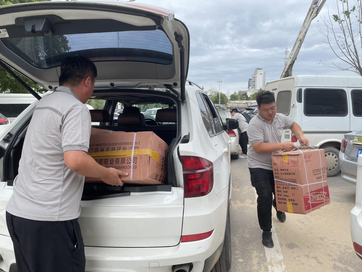 ▲正在前往郑汴水务公司送防水高筒胶鞋