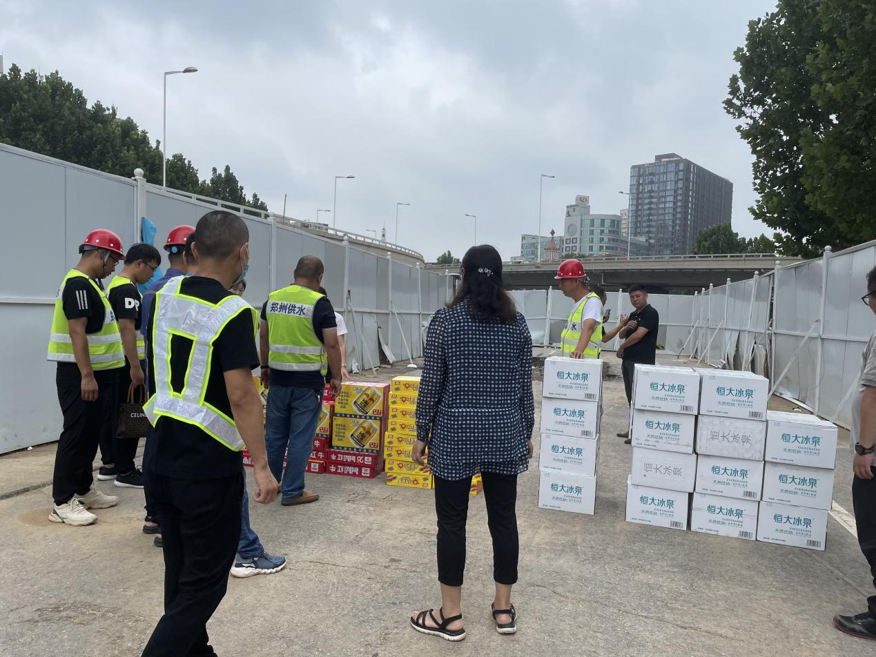 同时,在河南郑州受灾现场,美亚郑州公司总经理刘丽女士,带领员工克服物资紧张的困难,积极想办法采购紧急救灾物资,奔赴供水抢修一线,将物资送到各地区辛勤抢修人员手中,助力灾后重建保障供水,支援抢险救灾工作。