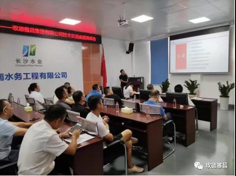 长沙水业集团有中南水工邹拥林副总经理、张建新部长以及中南水工部分技术和施工负责人与我司湖南分公司全体工作人员及总部售后团队和技术团队共同参会。就成品支架、不锈钢管道的应用、安装等相关问题展开了深入的技术交流和研讨。