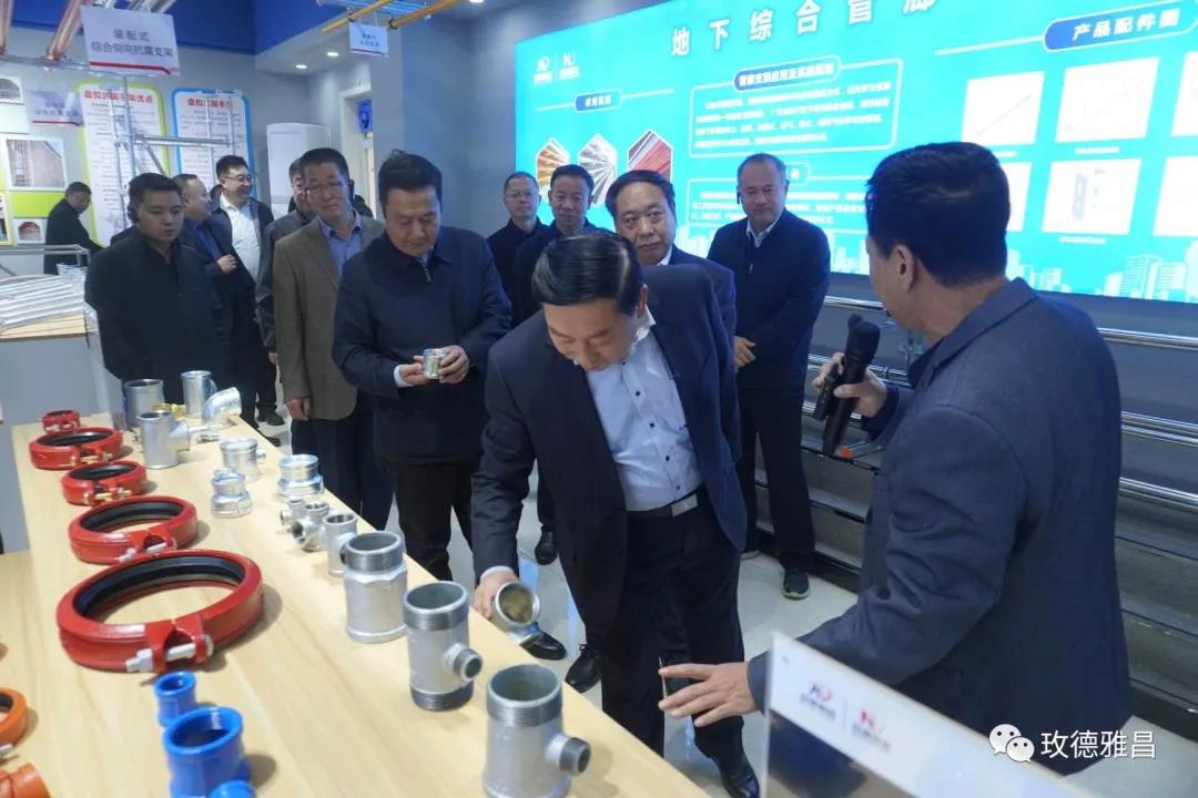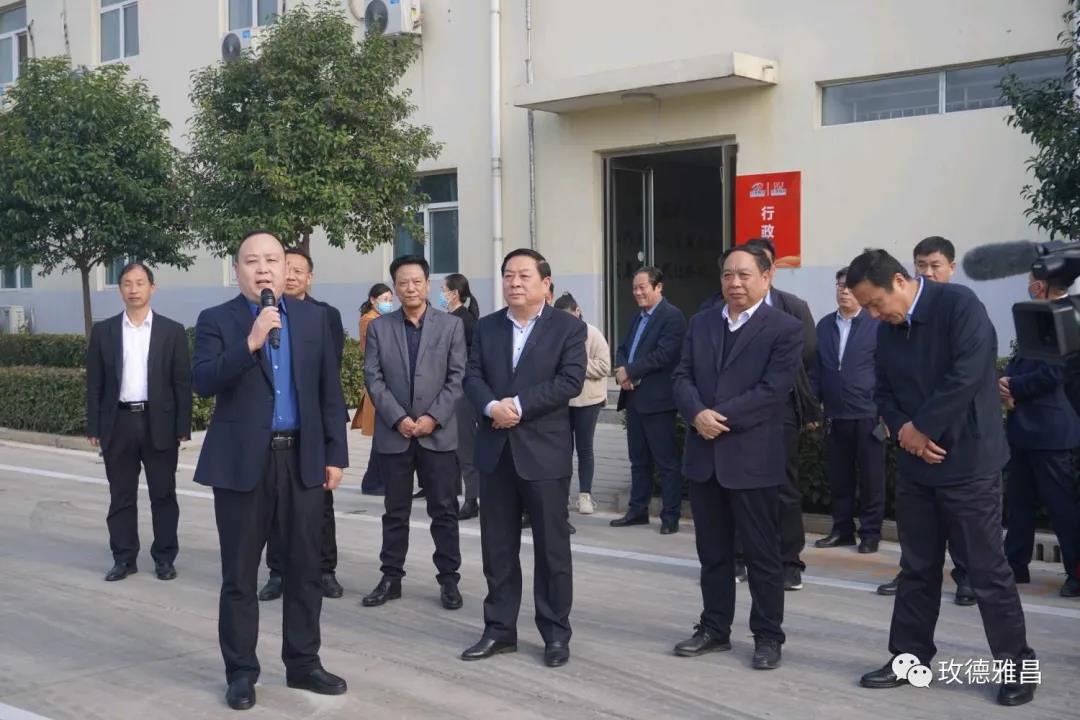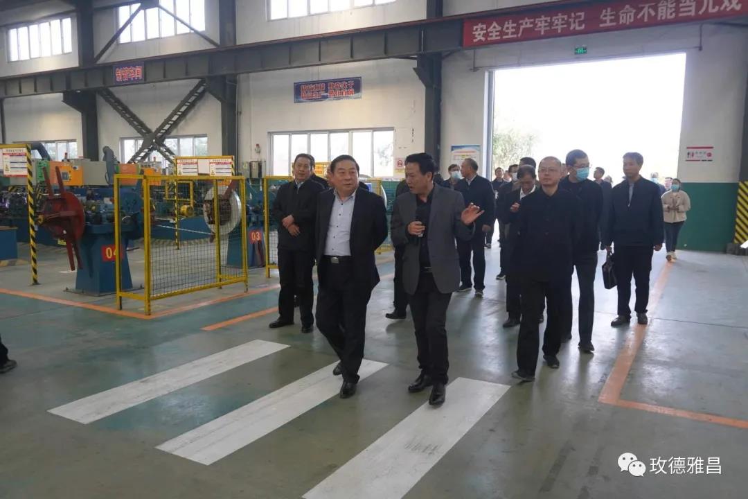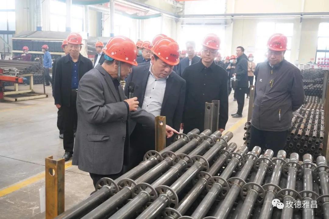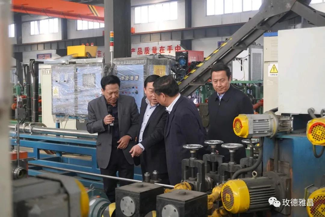 玫德雅昌(鹤壁)管业有限公司总经理徐建军向市、县主要领导汇报了公司生产经营情况,陪同各位领导参观了不锈钢管材、抗震支架、脚手架生产线。