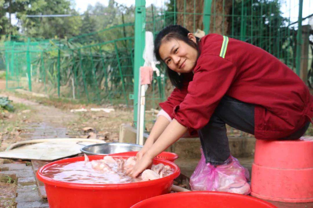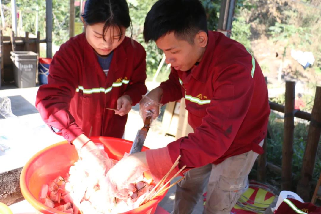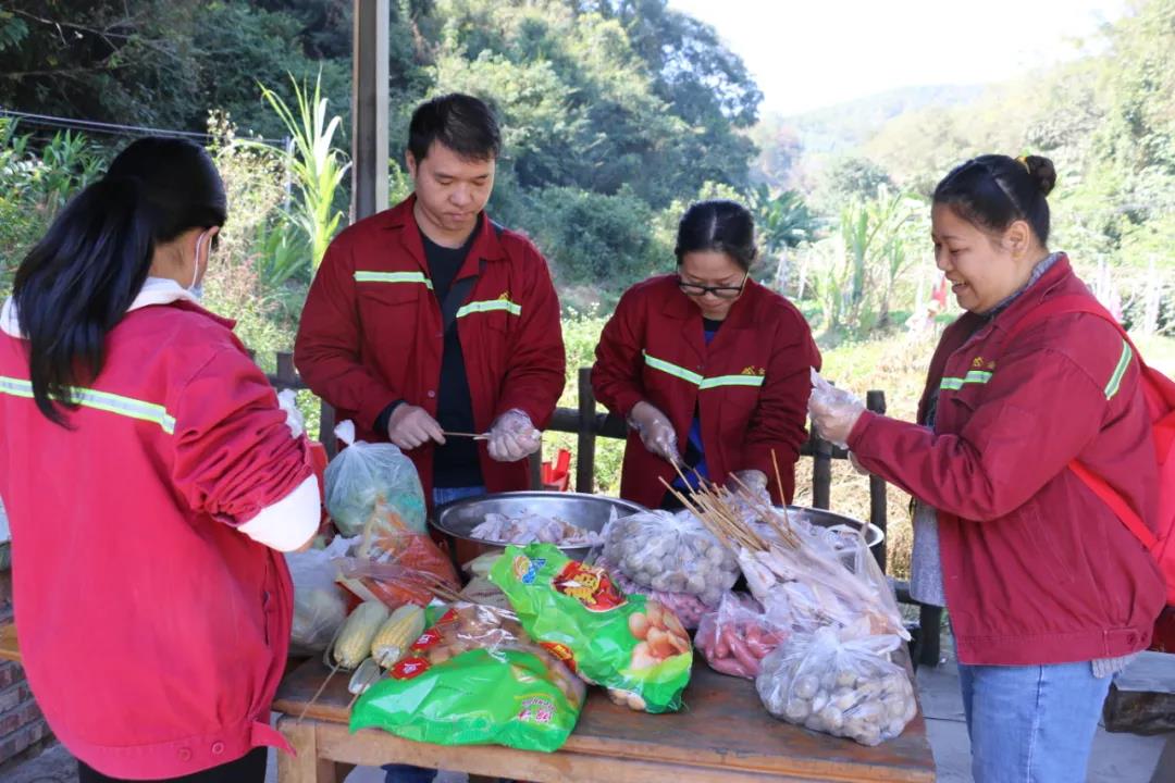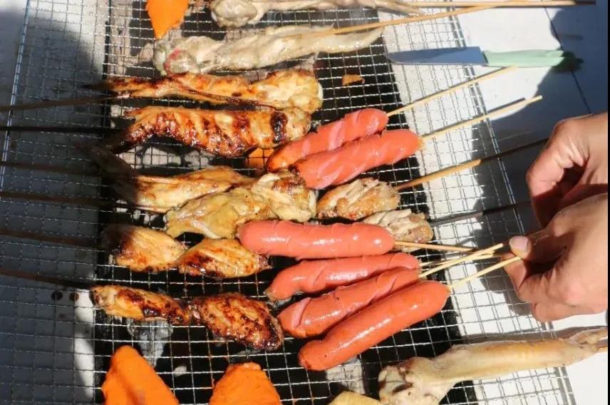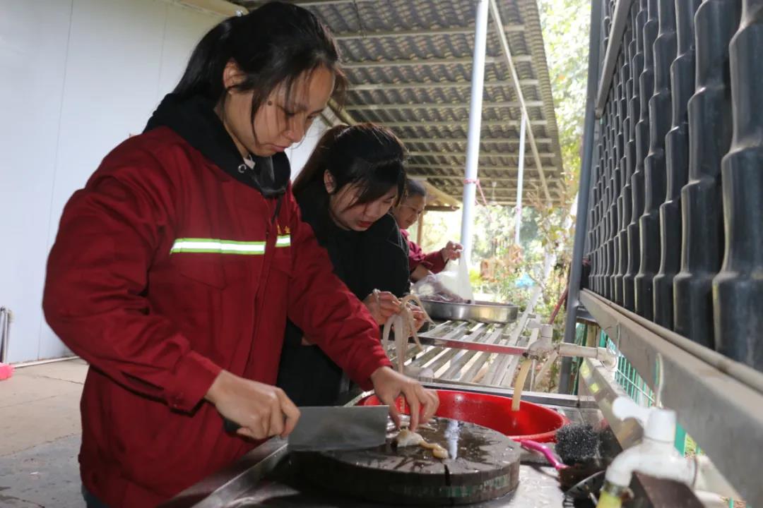 活动中大家分工明确,备菜组不畏冷水的严寒,利落地将食材清理干净、腌制;串签组快准狠的操作让食材停稳在竹签上;道具布置组严谨有序地搬运活动物资、布置场地,只为本次团建活动的顺利开展。