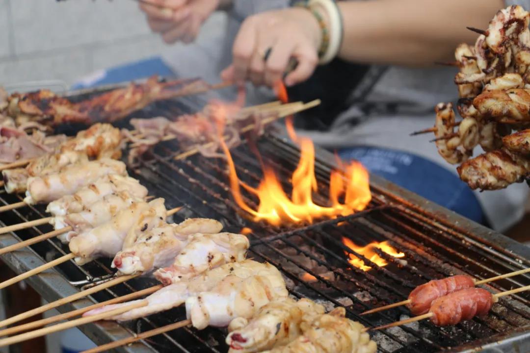 各种食材在炭火的烤灼下,散发出阵阵香气~