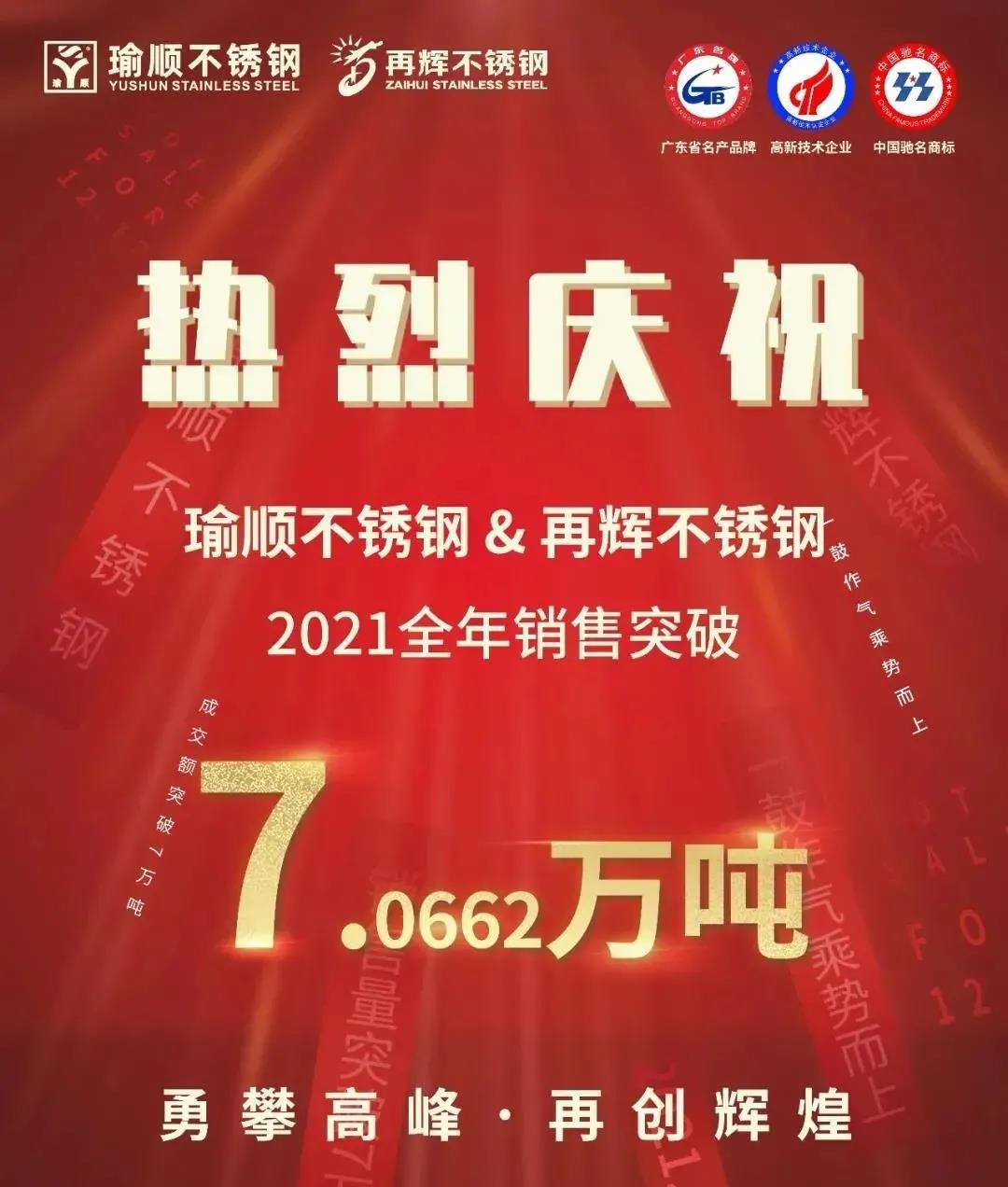 祝贺再辉&瑜顺不锈钢全年销售突破超7万吨