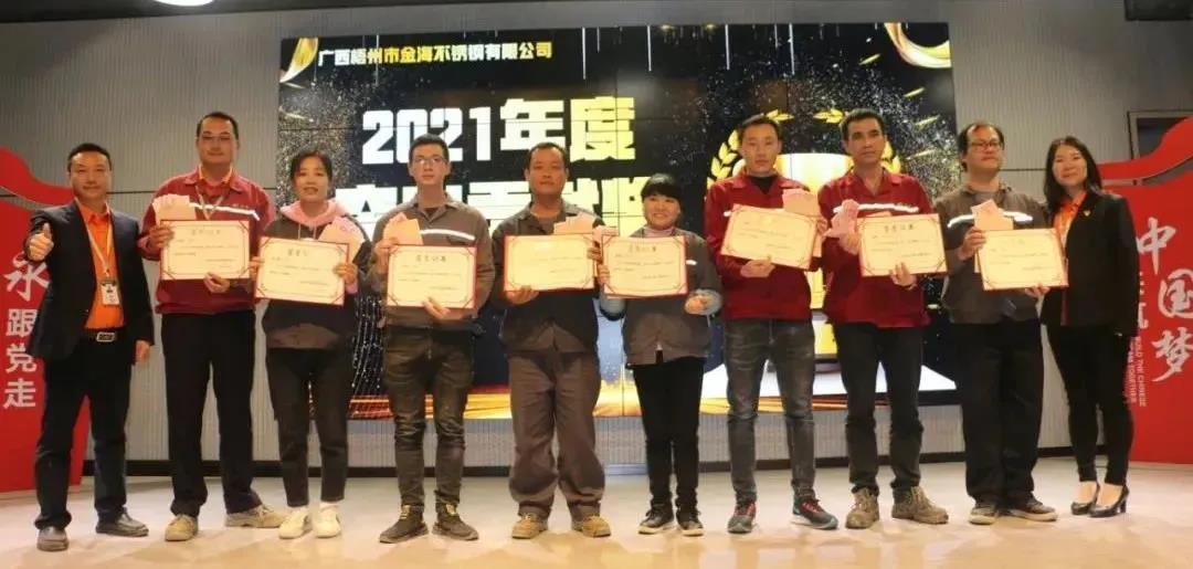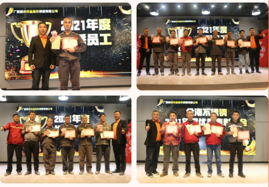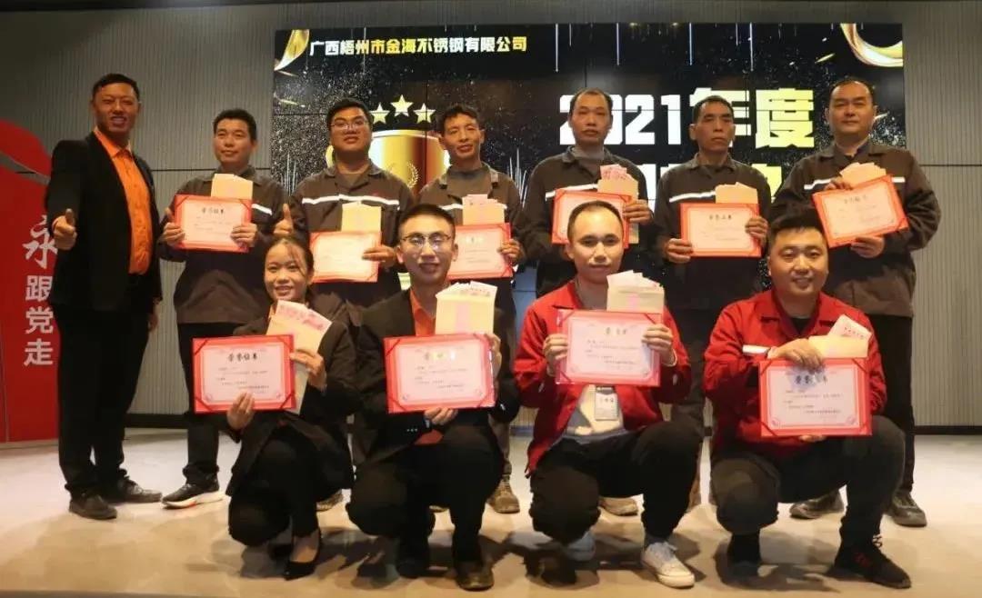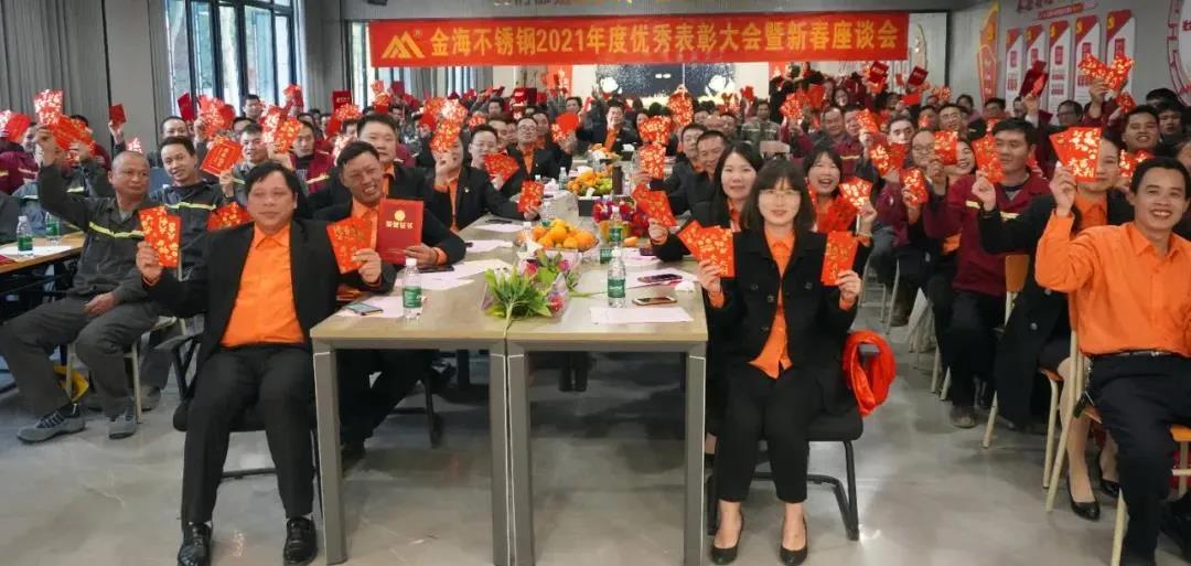 广东省不锈钢材料与制品协会副会长单位广东金海辉煌集团旗下金海不锈钢2021年度优秀表彰大会暨新春座谈会,在2022年1月19日成功举行。这是金海奋斗者的盛会, 这是金海价值创造者的盛会,这刻金海铁军云集,金海精英汇聚。金海奋斗文化,讴歌奋斗者,点赞价值创造者。金海文化倡导,我们尊崇英雄,团队才能产生更多的英雄;我们褒奖优秀,才会激励大家争做优秀,才能最终强大金海铁军!这是彰显金海力量的盛会,金海铁军最有战斗力,最能为组织创造价值,他们在每一次战役冲锋在前、所向披靡;他们在每一次改革中横扫一切、创新一切;他们在每一次任务面前责无旁贷、没有任何借口!
