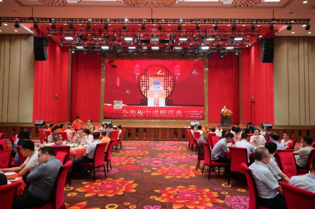 9月19日,金海1050mm全连轧生产线顺利投产暨中成顺乔迁庆典晚宴在佛山市南海区雍景湾大酒楼隆重举行。广东金海辉煌集团李娟董事长、王文辉总裁,再辉(中成顺)孙峰董事长与来自全国各地的客户代表等500多人欢聚一堂。广东省不锈钢材料与制品协会执行会长兼中国建材市场协会金属建材应用分会会长林泽榆携会长助理陈嘉泳出席祝贺,与到会嘉宾共同见证金海集团开启“百亿智慧工厂”新篇章,共同祝贺中成顺公司乔迁大喜。