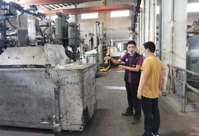 检查组率先前往顺某金属材料有限公司,该公司为近期群众信访投诉的热点,现场检查其原辅材料使用情况以及其他问题的整改情况,督促企业加快落实,切实做好整改措施。随后,到涉刑事案件的鑫某彩金属材料有限公司开展复查,现场检查原有私设的暗管已拆除,其余问题已基本完成整改。