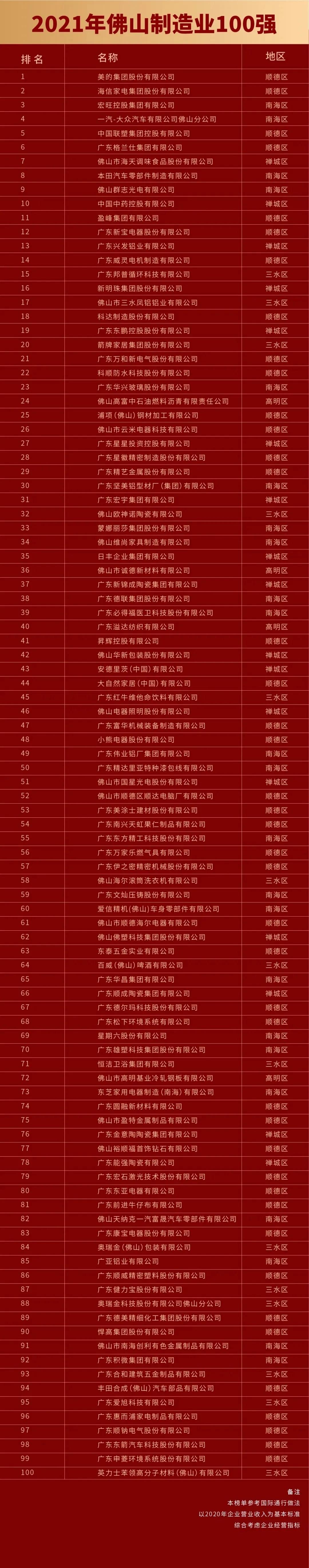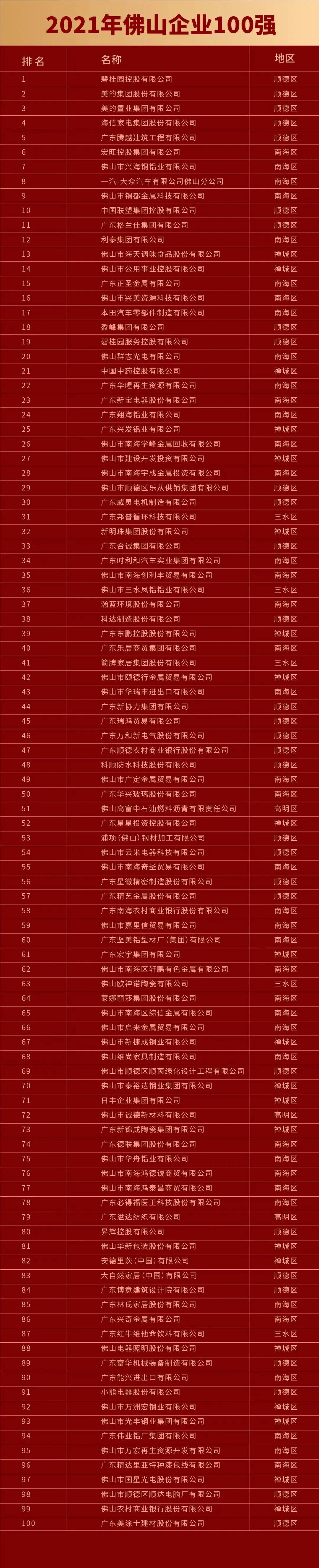 11月20日下午,佛山市企业联合会、佛山市企业家协会发布了2021年佛山企业100强名单。